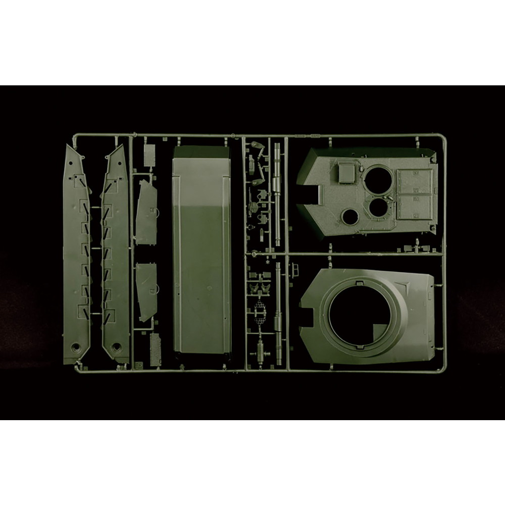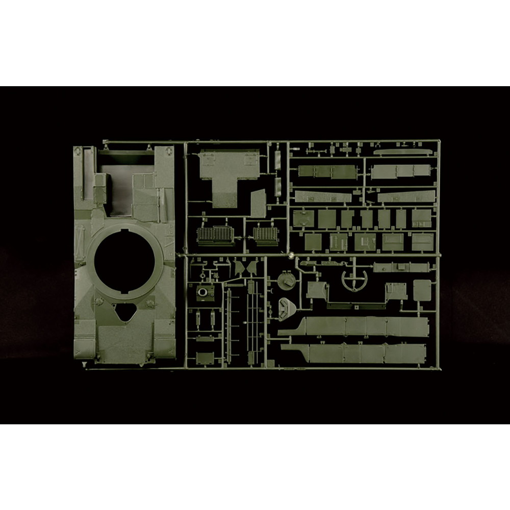 低く幅の広いシャープな砲塔をはじめ、車体形状も実感たっぷりに再現。また、車体下部は下面と側壁、および、リヤパネルの分割で組み立て式。
