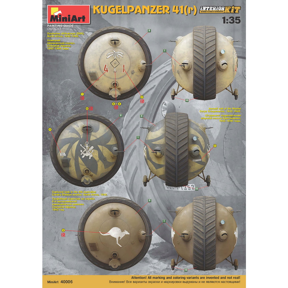 第二次大戦中にドイツ軍が開発史たとされる球体戦車、クーゲルパンツァー41(r)を1/35再現。室内も再現したフルインテリアキットです
