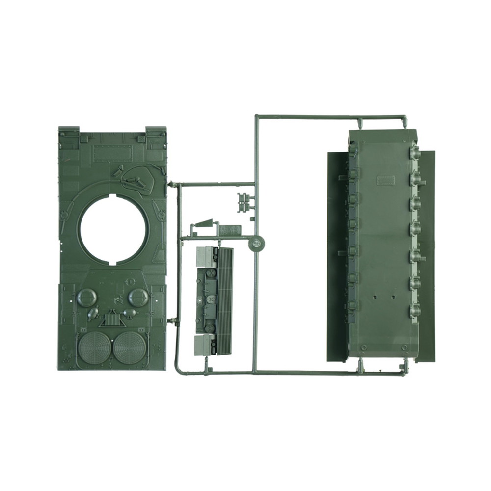 車体下部は一体パーツで履帯は組み立てやすいベルト式を採用。大型の砲塔には120mm滑空砲が装備され、モデルでもその迫力、力強さが伝わる仕上がりです。