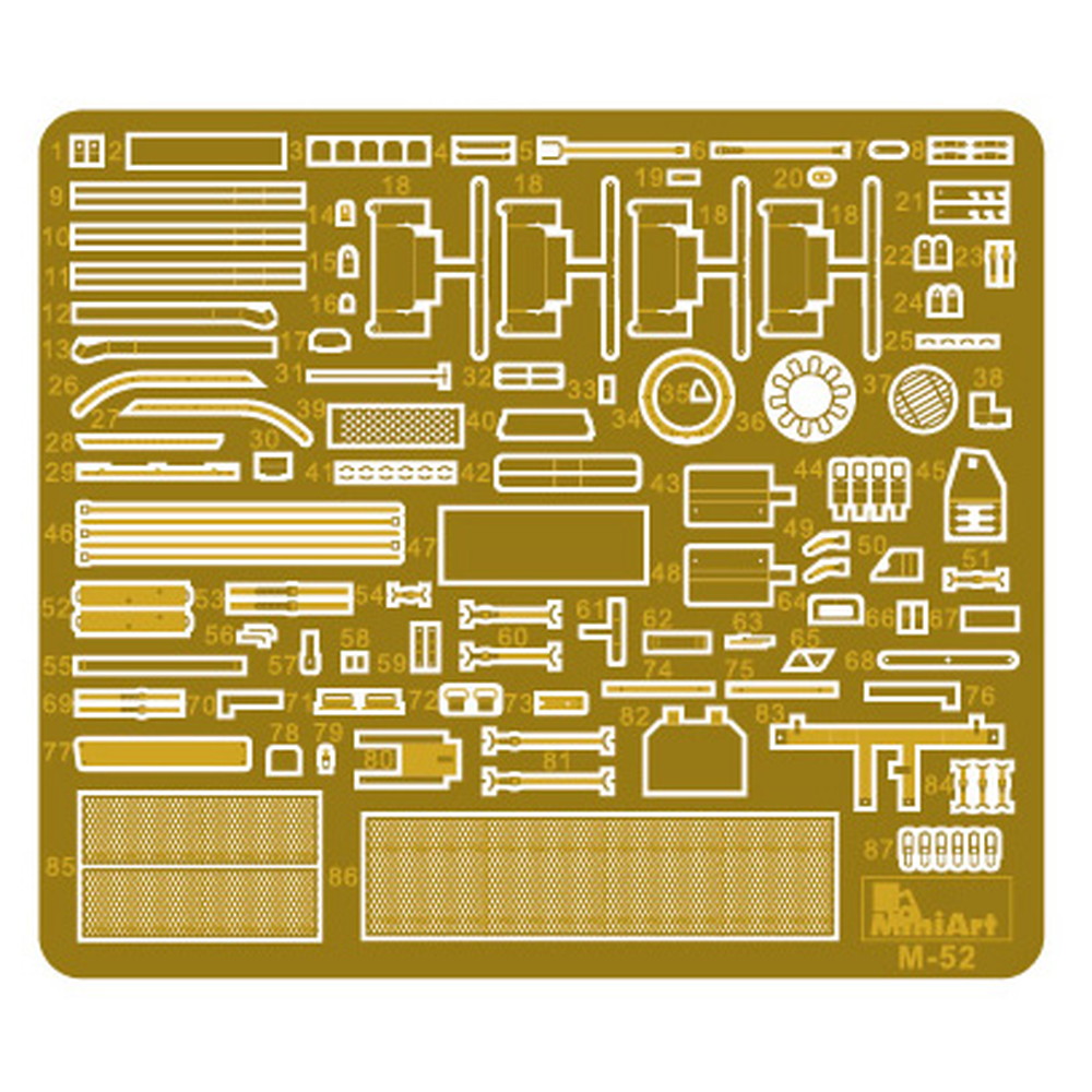 さらに、車体上部や砲塔はその形状を正確に再現するとともに、雑具箱や各種装備品など、細かなディテールもしっかりと表現。細部の繊細な仕上がりを演出するエッチングパーツも付属しています。