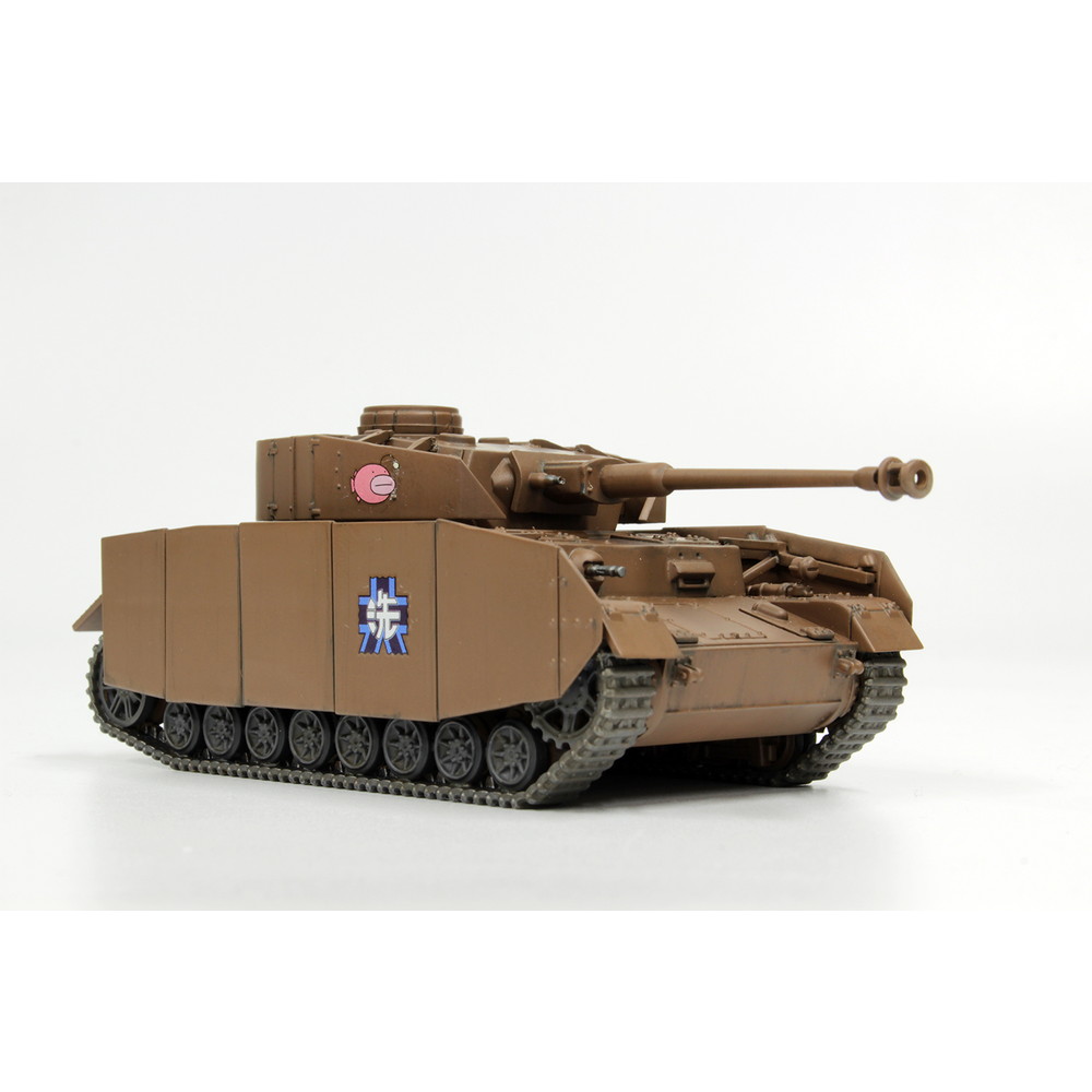 主人公、西住みほが率いるあんこうチームが搭乗する大洗女子学園のIV号戦車H型と、劇中でも高い人気を誇るライバル校、黒森峰女学園のティーガーIを1/56スケールで再現。それぞれの車輌は形状をしっかり表現しているのはもちろん、車体各部のディテールも雰囲気たっぷりにモデル化しています。校章などのマークはデカールで用意。アニメの仕上がりをお楽しみいただけます。