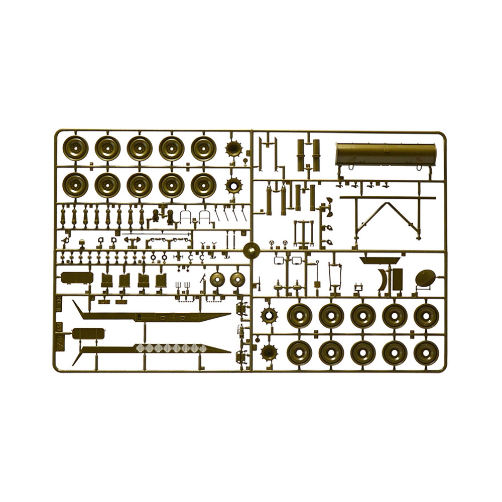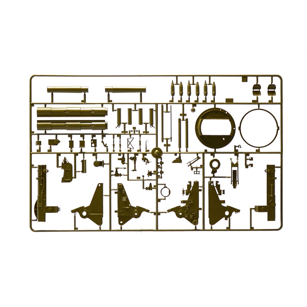 オープントップの車体に太い203mm榴弾砲を装備したメカニカルな姿を実感たっぷりに再現しています。車体下部は一体パーツでサスペンションアームなどは別体で用意。