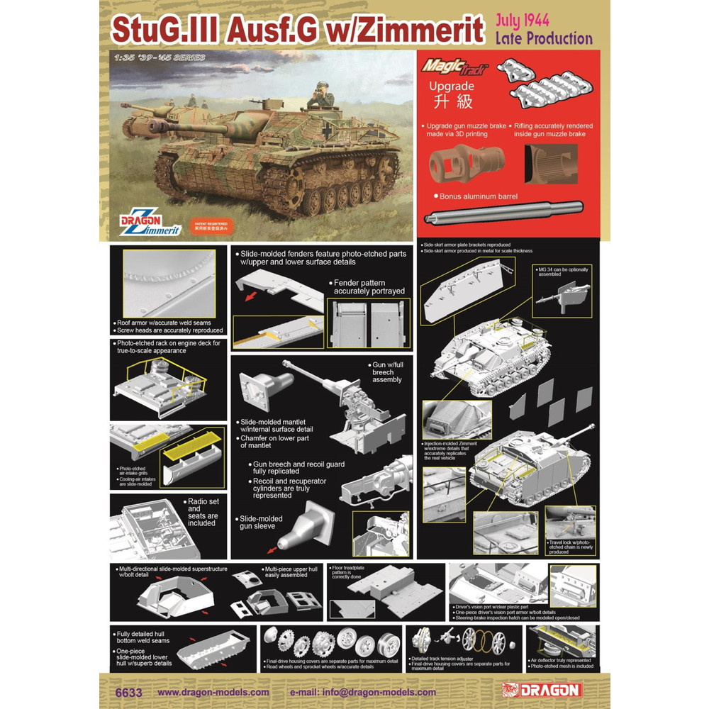 WW.II ドイツ軍 III号突撃砲G型 後期生産型 ツィンメリットコーティング仕様 マジックトラック/アルミ砲身/3Dプリントマズルブレーキ付属
