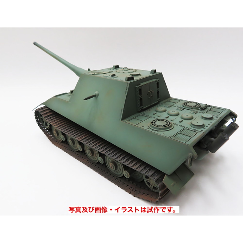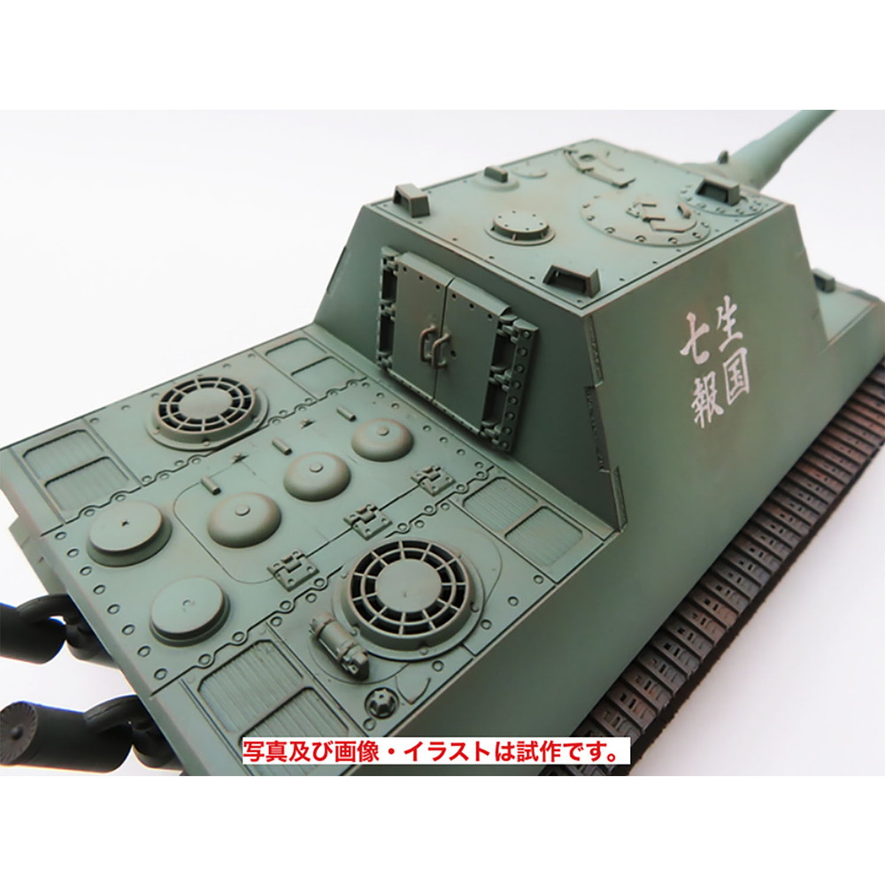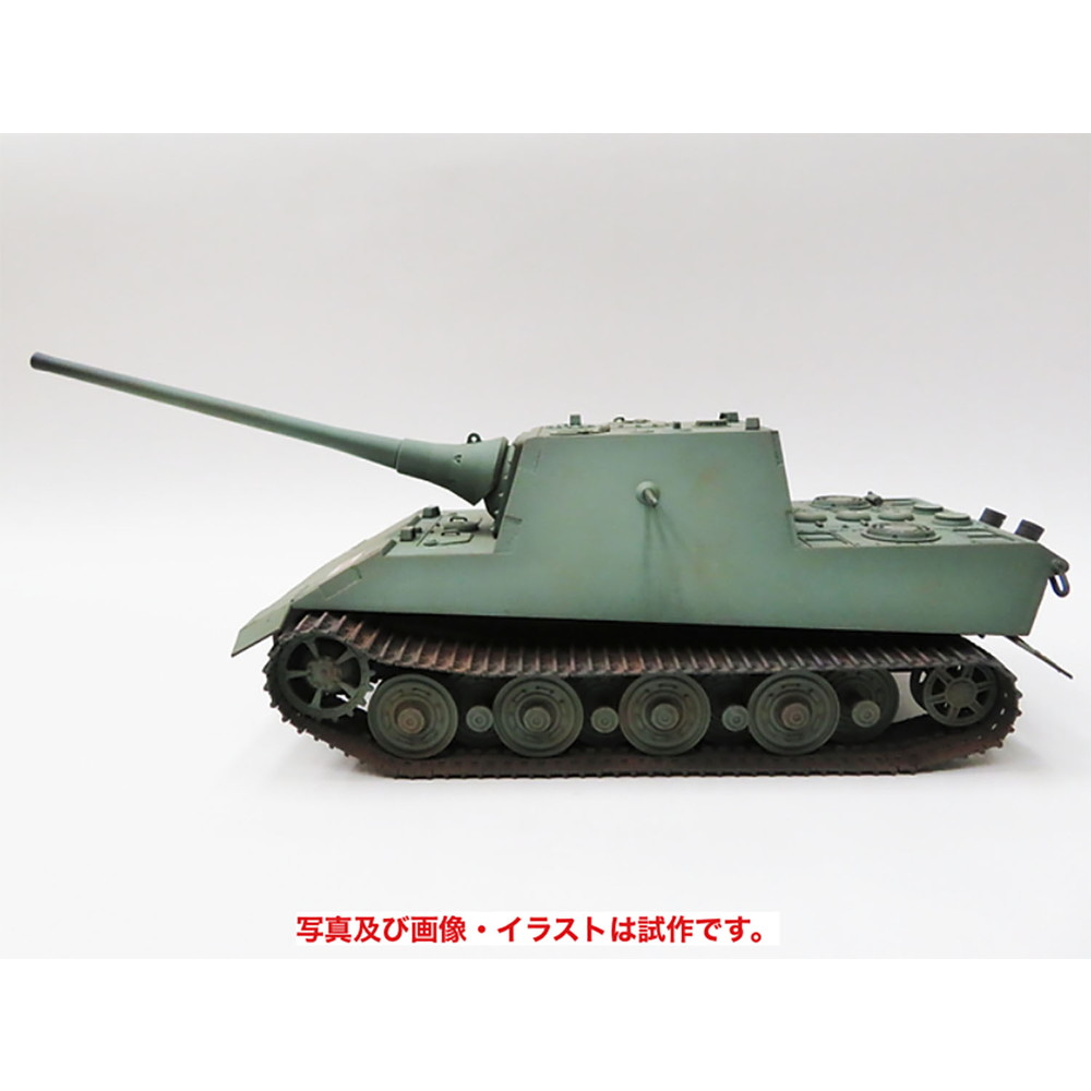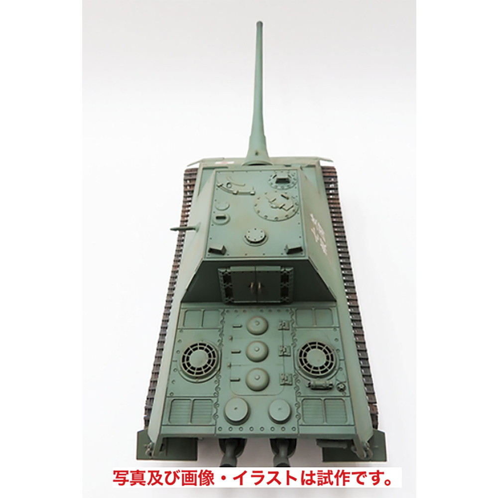 転輪はすべて別パーツ、履帯は分割接着方式を採用して立体感あふれる足周りを実現。仕上がり全長は約270mm、幅約110mm、高さ約85mmと迫力十分。