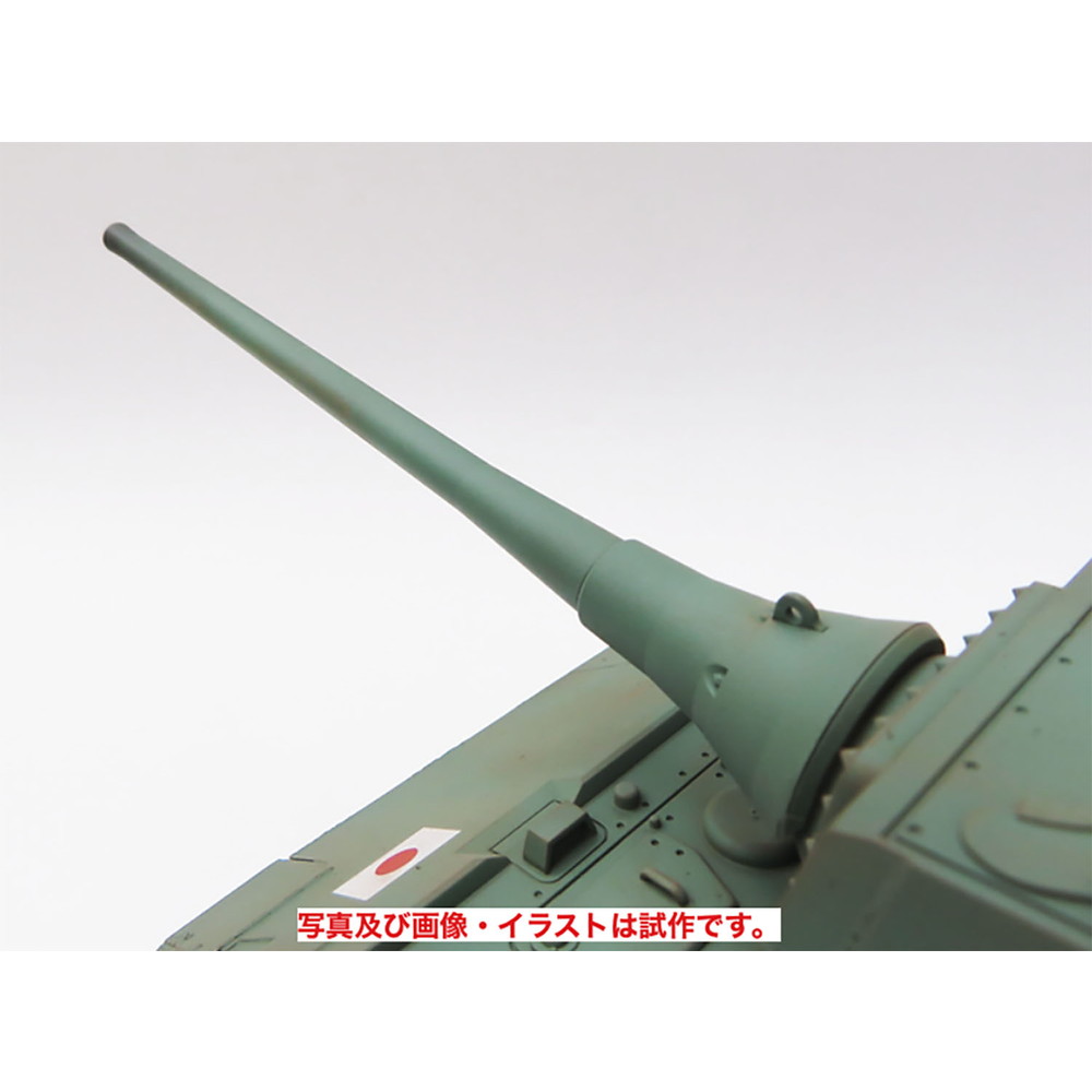 そこに搭載される長大な12糎砲はアルミ削り出しの金属パーツをセット。砲身は上下可動、装填部も再現しています。