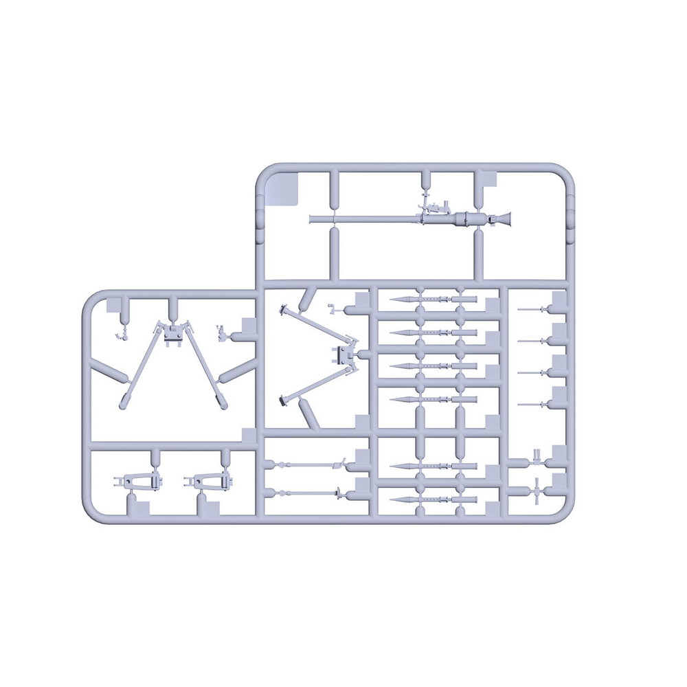 60点以上のパーツでそれぞれの本体に加えて三脚や砲弾、弾薬ケースなど周辺機器、装備も再現。DShKM重機関銃用の三脚は1つ、SPG-9無反動砲用の三脚は2種類のバリエーションをセット。