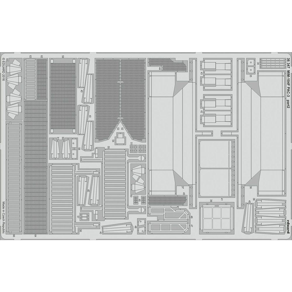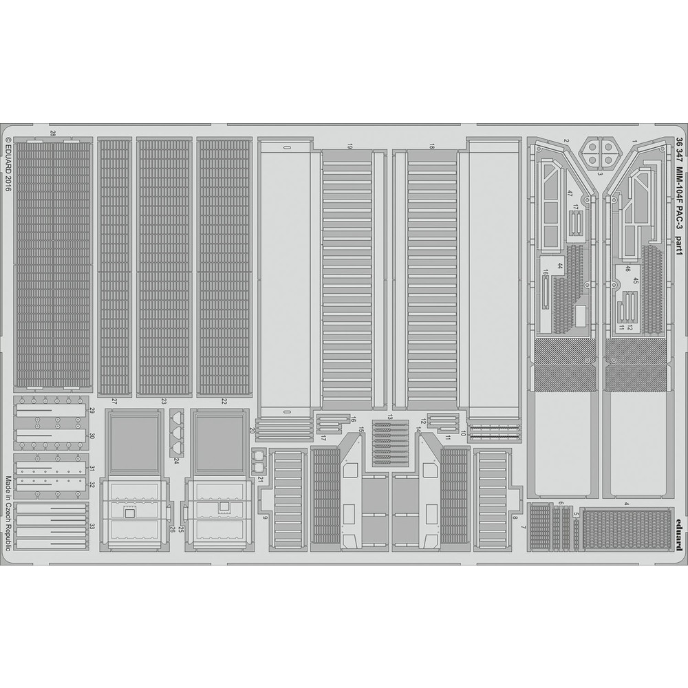 このセットにはエデュアルド製のディテールアップ用エッチングパーツも付属。トレーラー上面プラットフォームの表面パターンやミサイルキャニスターの繊細なディテールをリアルに演出します。