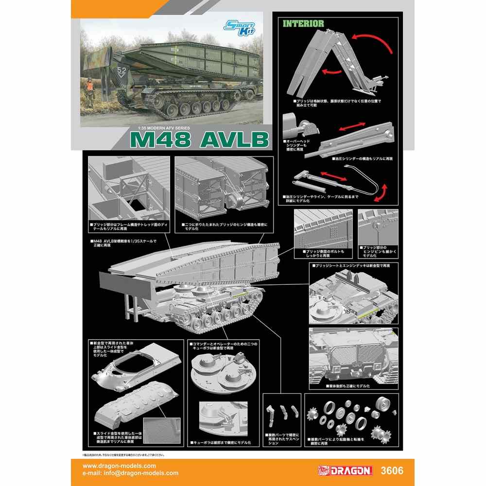 モデルは戦後アメリカの傑作戦車、M48パットンをベースに改造された架橋戦車、 M48AVLBを1/35スケールで再現したプラスチックモデル組み立てキットです。