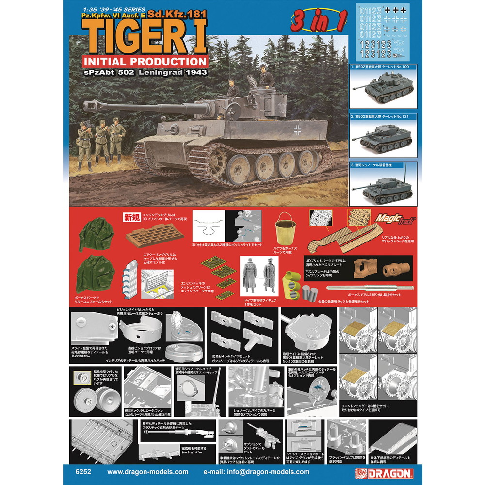 WW.II ドイツ軍 ティーガーI 極初期型 第502重戦車大隊 レニングラード 1943年 3in1 マジックトラック/アルミ砲身/3Dプリントパーツ/フィギュア付属 豪華セット