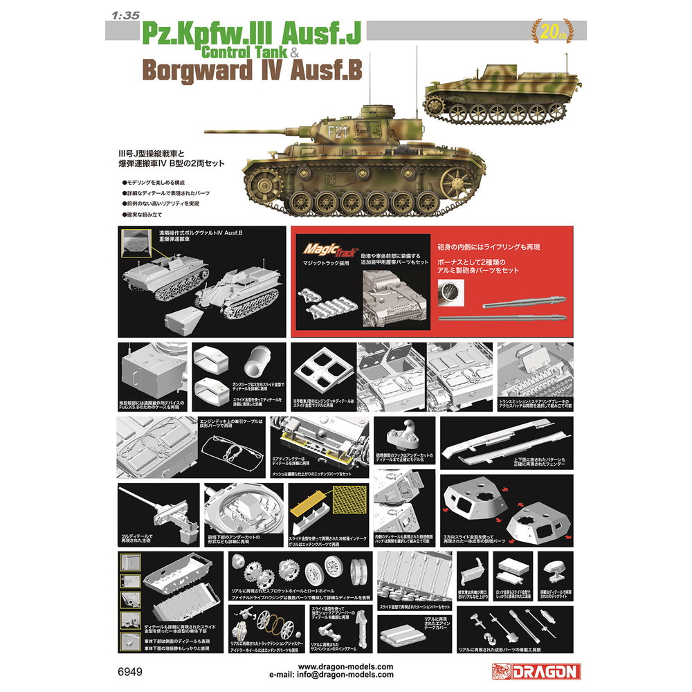 WW.II ドイツ軍 III号戦車J型 誘導指揮車&ボルグヴァルドIV B型爆薬運搬車セット マジックトラック/アルミ砲身付属