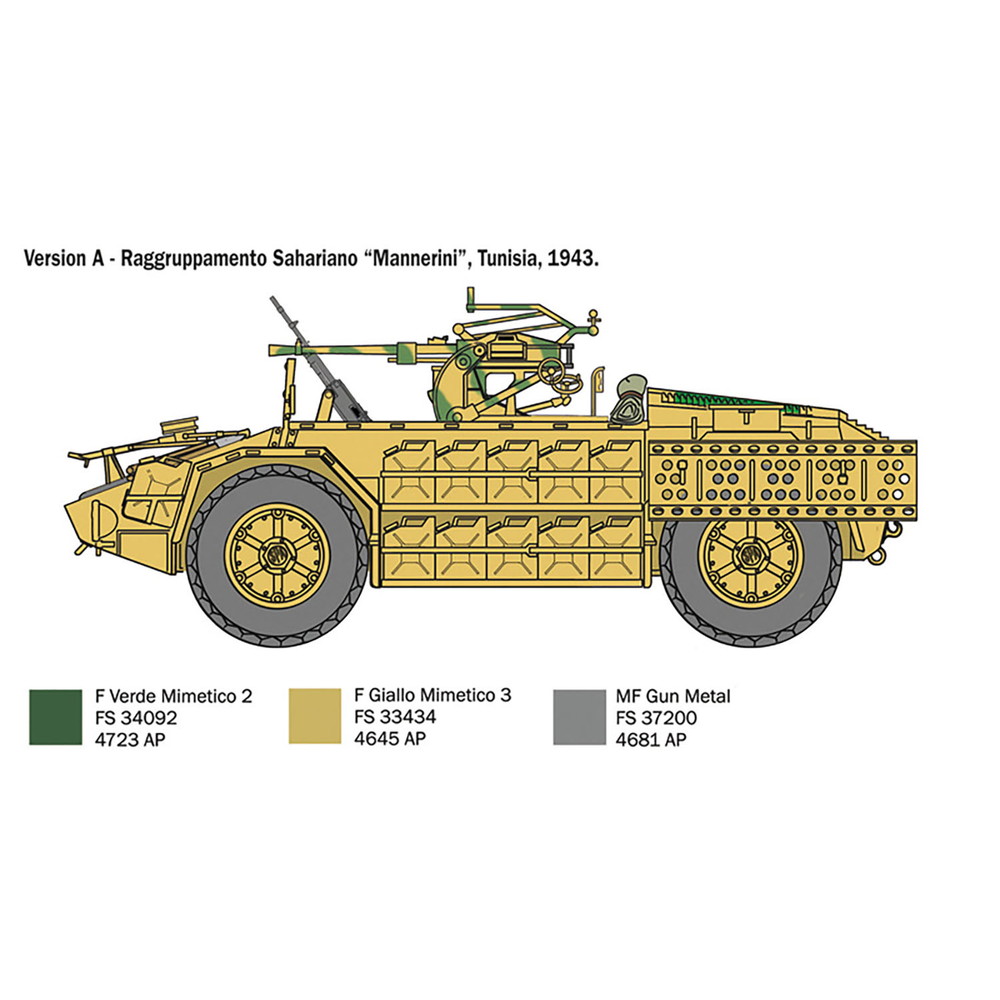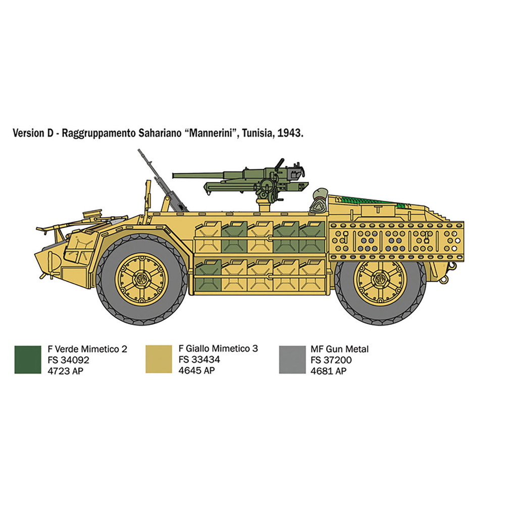 モデルは1942年から生産されたイタリアの装輪偵察車、カミオネッタAS42サハリアーナを1/35スケールで再現。