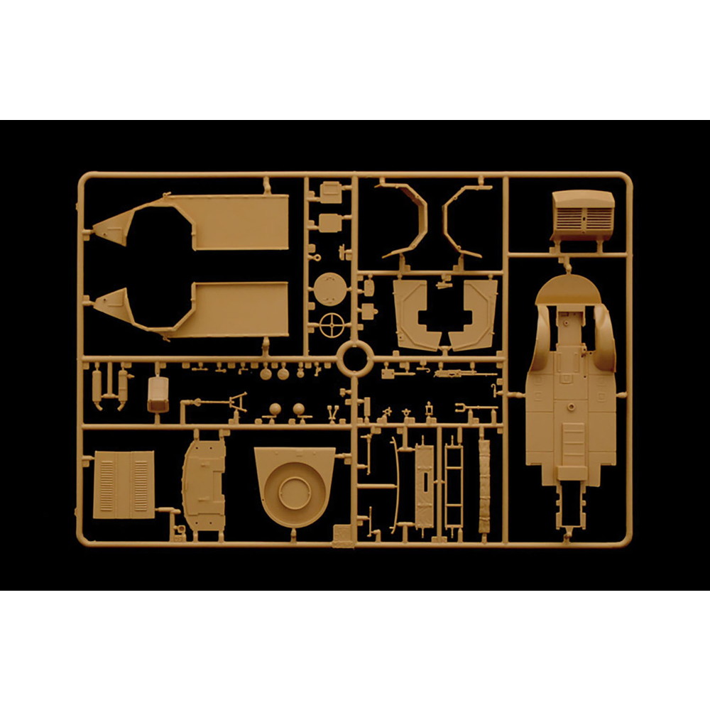 オープントップの車内は中央にレイアウトされた運転席も細かくモデル化され興味深く組み立てていただけます。車体に搭載される武装は2種類を選択して組み立て可能。