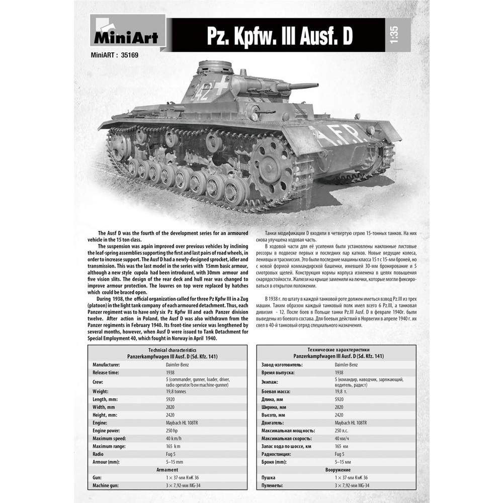 第二次世界大戦前にドイツ軍が開発したIII号戦車の初期タイプの一つ、D型を再現した1/35スケールのプラスチックモデル組み立てキットです。