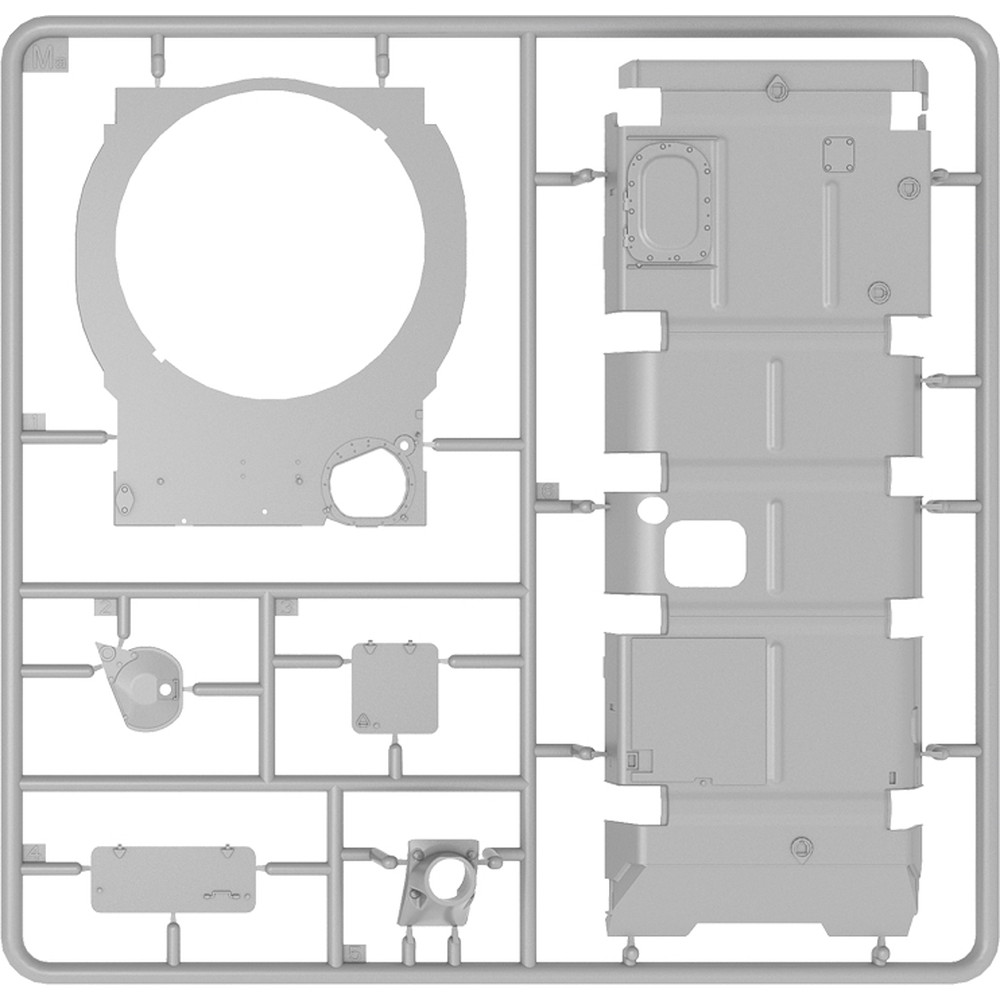 このキットはエンジンや車体内部、砲塔内部などを詳細に再現したフルディテールのモデルです。車体下部は箱組み式。サスペンションはトーションバーもモデル化され、完成後も可動。