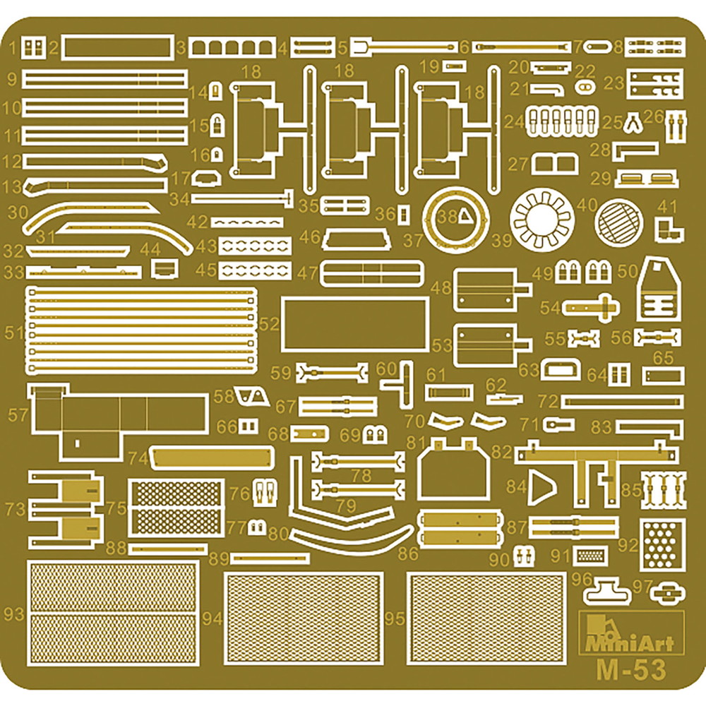 さらに、車体上部や砲塔はその形状を正確に再現するとともに、雑具箱や各種装備品など、細かなディテールもしっかりと表現。細部の繊細な仕上がりを演出するエッチングパーツも付属しています。
