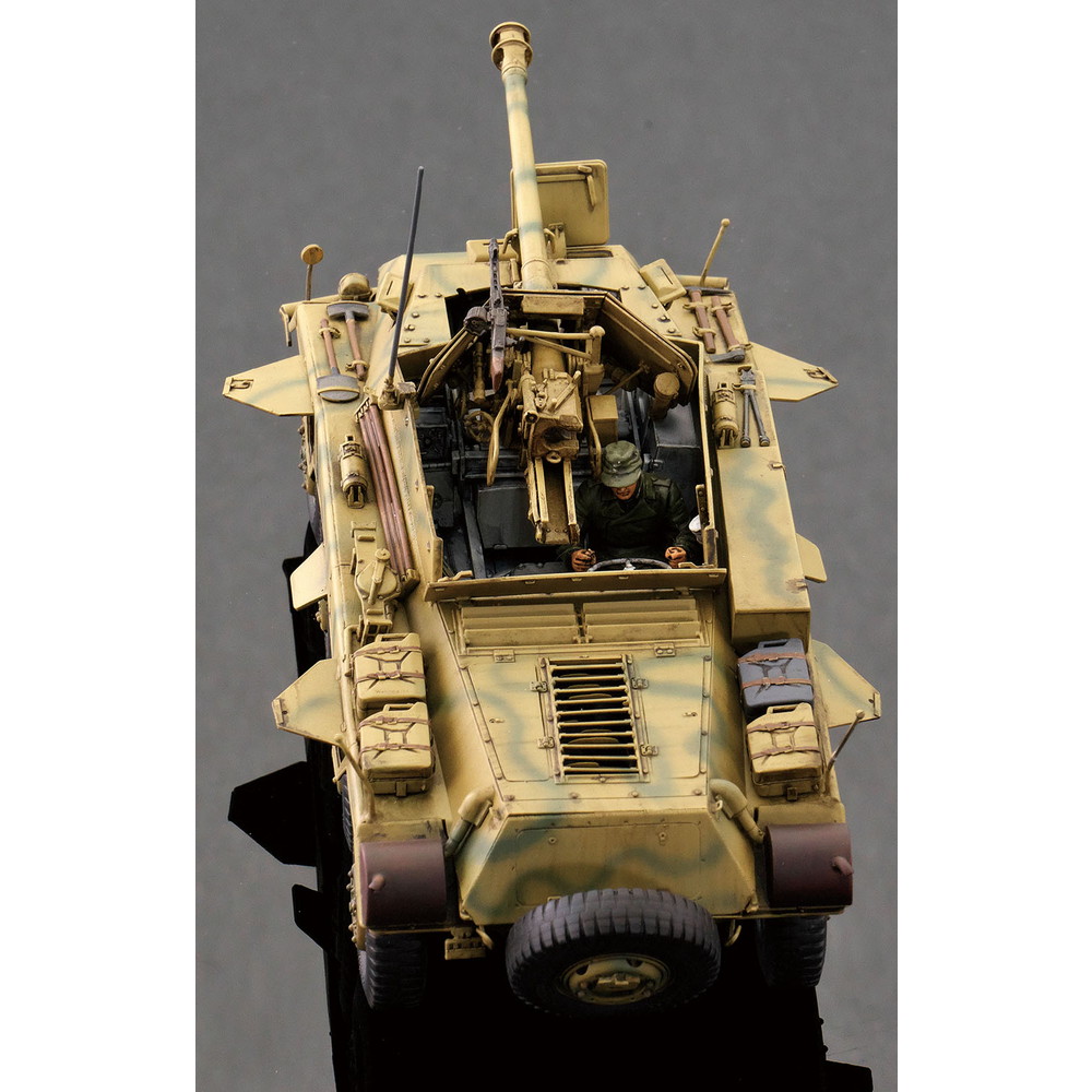 車両は特徴あるデザインの車体をはじめ8輪のメカニカルな足回りなども詳細に再現。もちろんオープントップの戦闘室には7.5cm L/48砲を砲架や砲尾に至るまで繊細にモデル化。