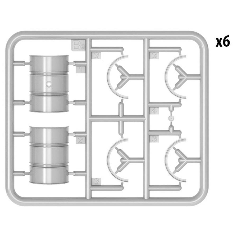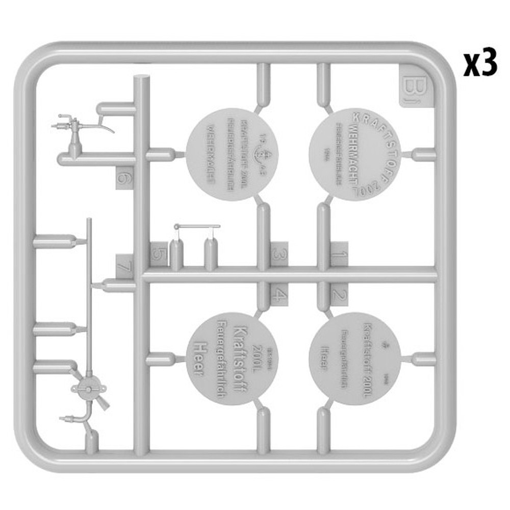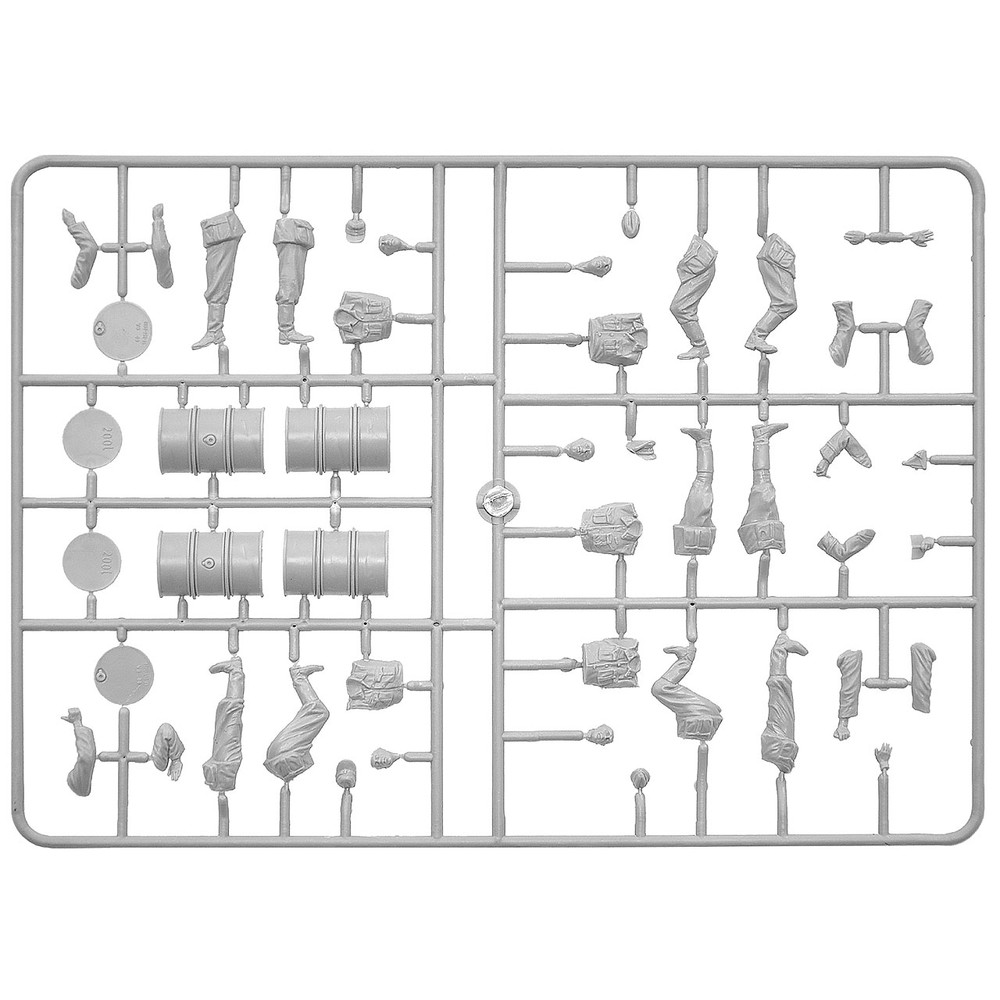 またこのキットには200バレル容量のドラム缶8本もセット。加えて貨車にドラム缶を載せる作業のポージングで再現されたドイツ軍兵士5体も付属。