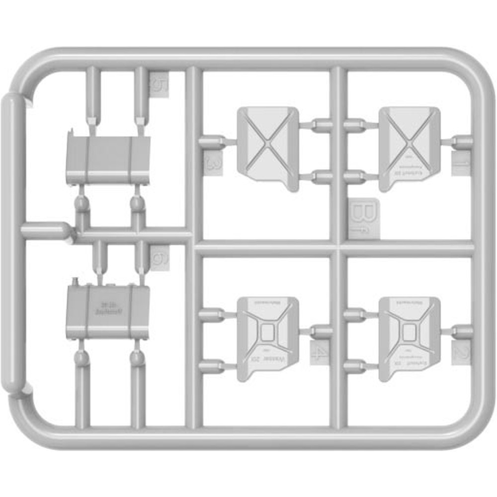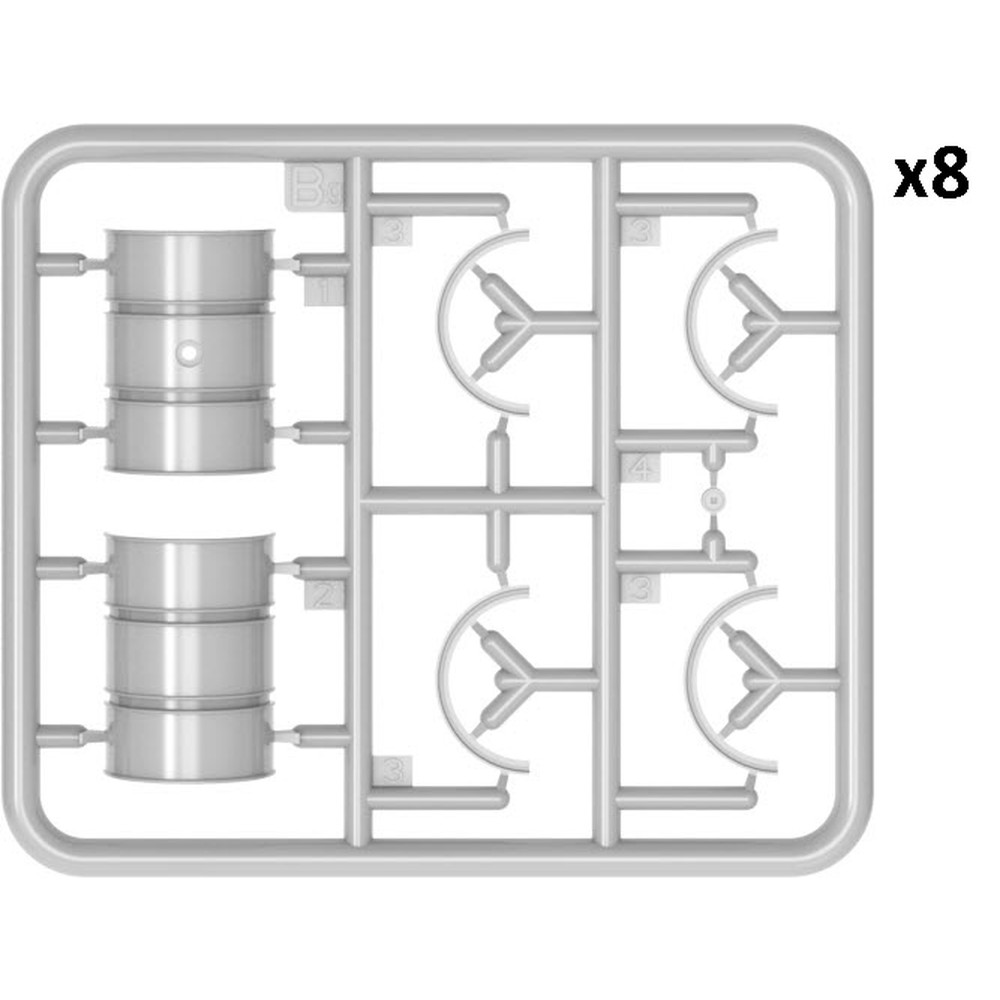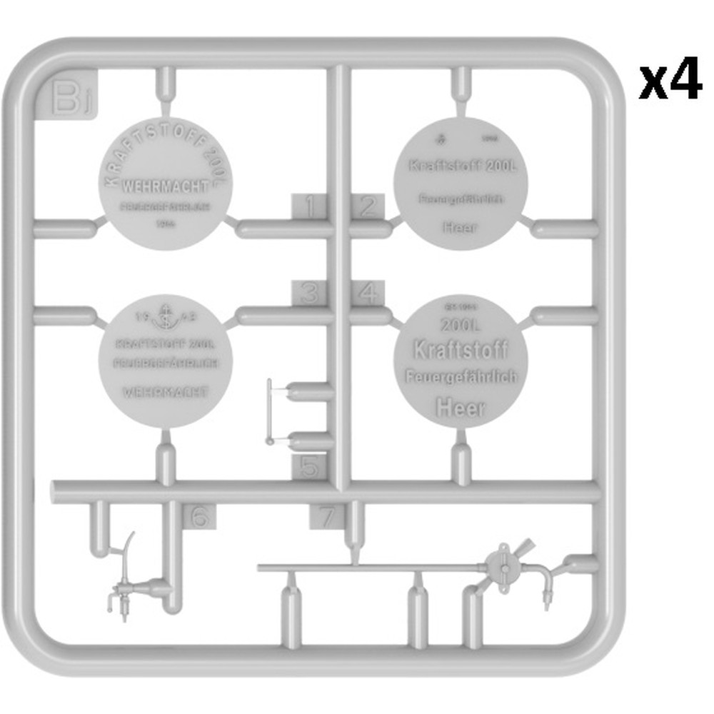 前線に燃料を運搬する燃料輸送者タイプをモデル化しています。荷台部分に搭載されるドラム缶やジェリカンが豊富にセットされ、そのドラム缶から燃料をジェリカンに入れる給油作業中のポージングで再現されたドイツ軍兵士のフィギュアも2体付属。