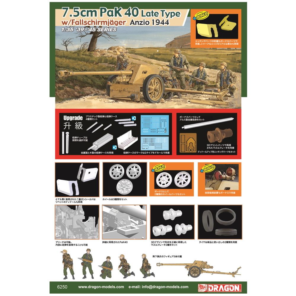 WW.II ドイツ軍 7.5cm対戦車砲Pak40後期型 アンツィオ1944 降下猟兵/アルミ砲身/3Dプリントマズルブレーキ/エッチング防楯/赤外線暗視装置/ボーナスホイール付属 豪華セット