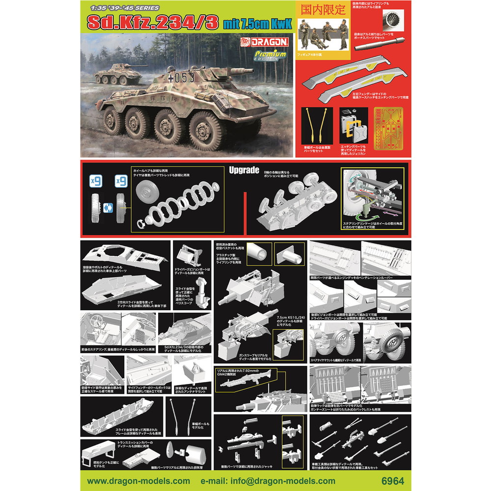 WW.II ドイツ軍 8輪重装甲車 Sd.Kfz.234/3 7.5cmKwK短砲身搭載型 アルミ砲身/金属車幅ポール/フィギュア4体付属 豪華仕様