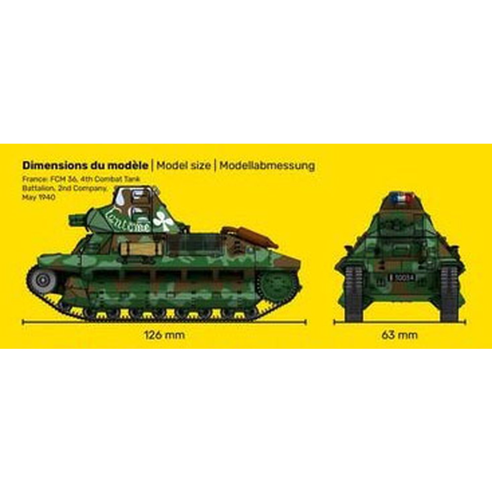 第二次世界大戦のフランス軍軽戦車、FCM36を再現した1/35スケールのプラスチックモデル組立キットです。