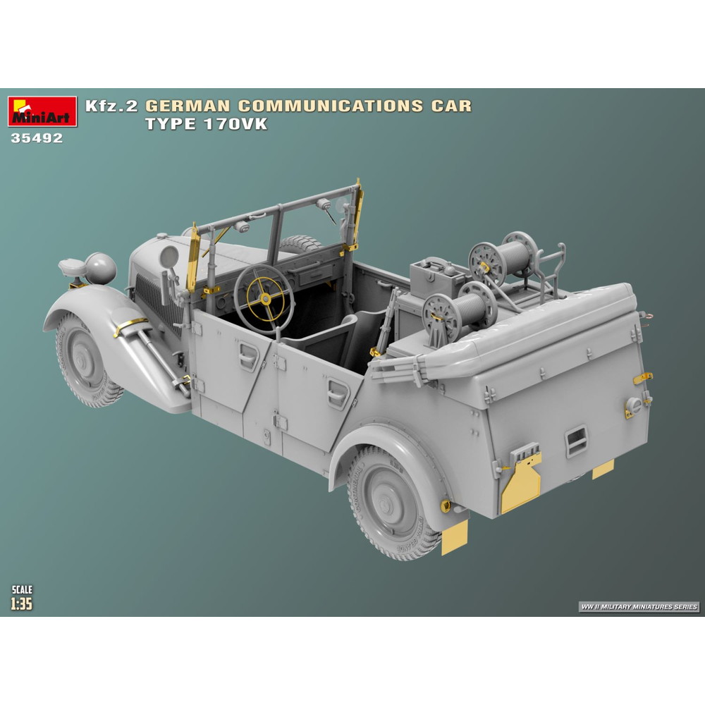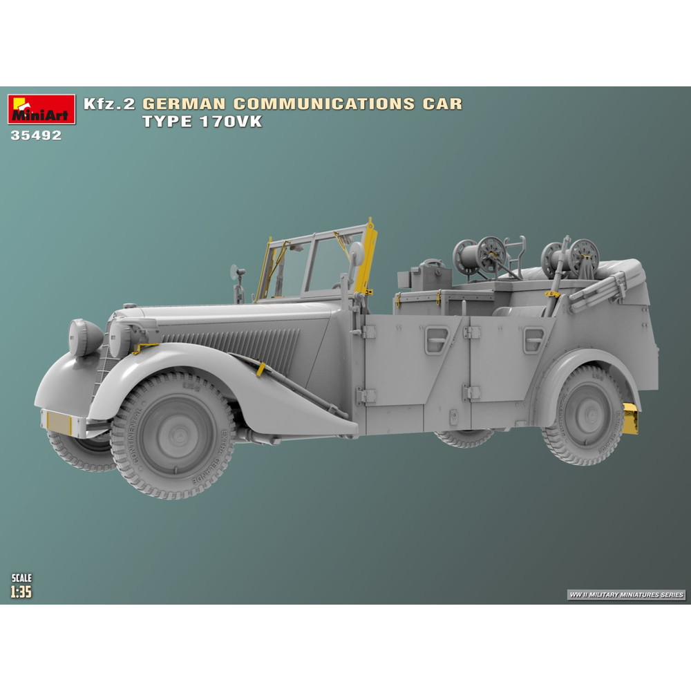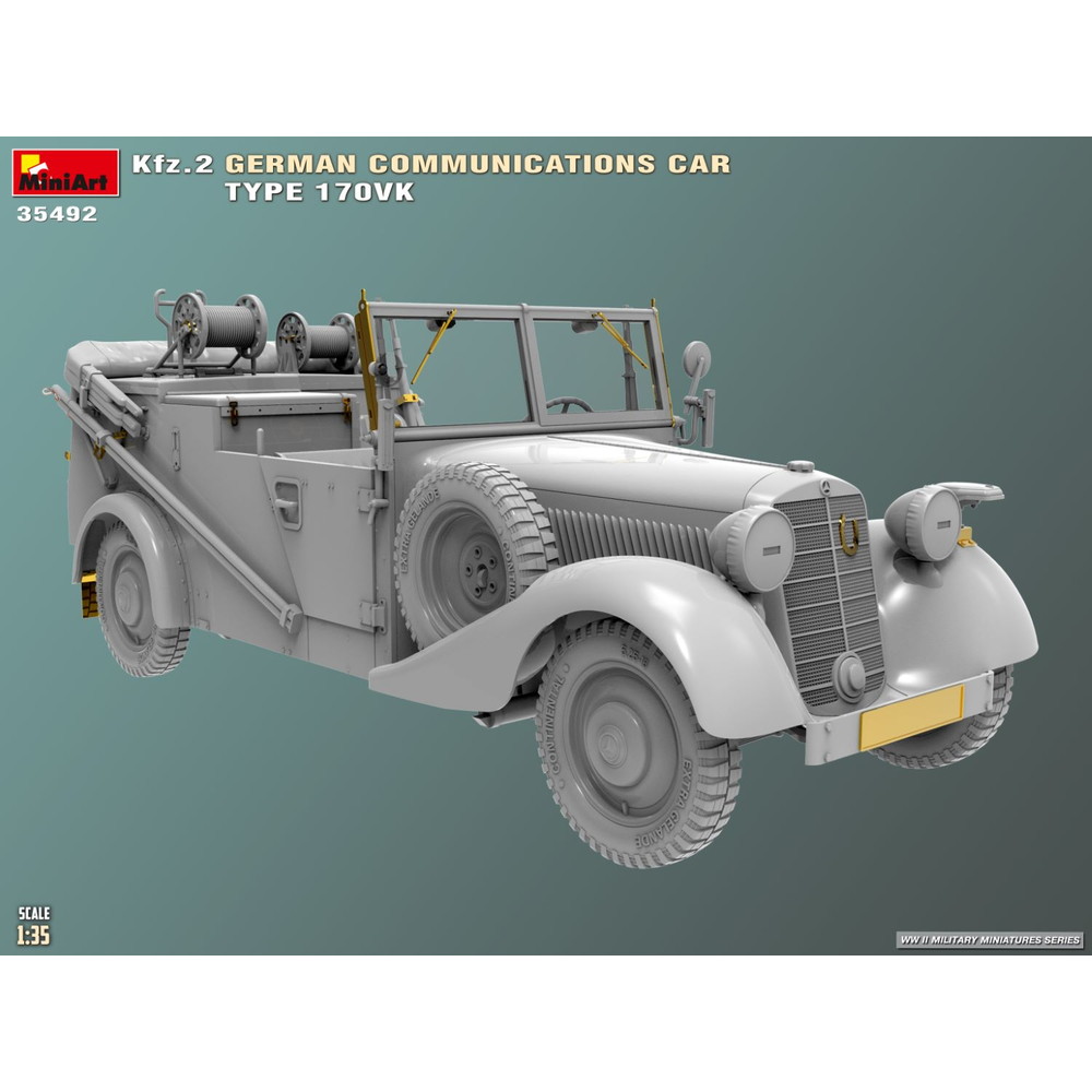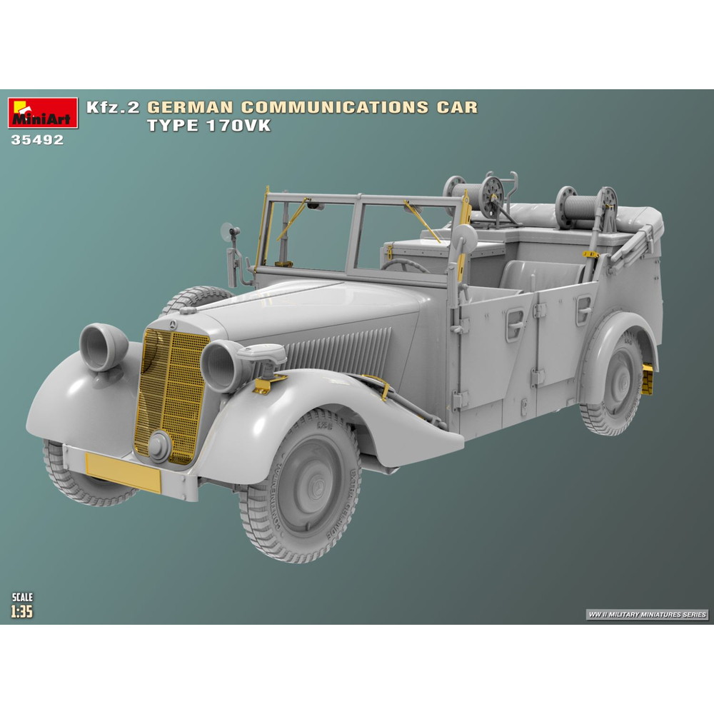 1/35スケールで第二次世界大戦中にドイツ軍が運用した通信車、Kfz.2、170VKを新規金型で再現したプラスチックモデル組み立てキットです。
