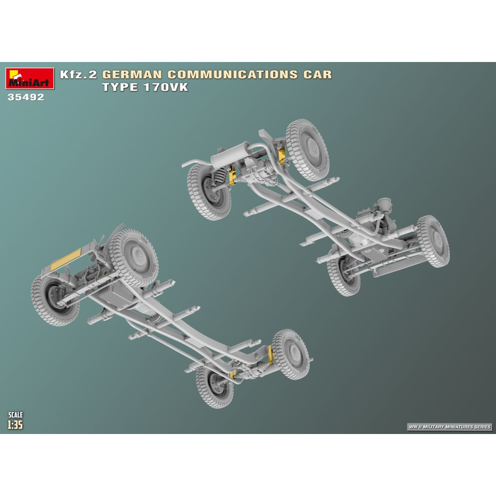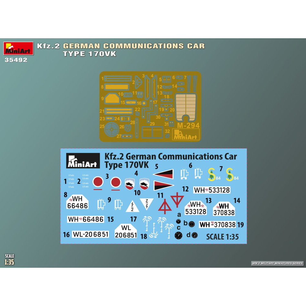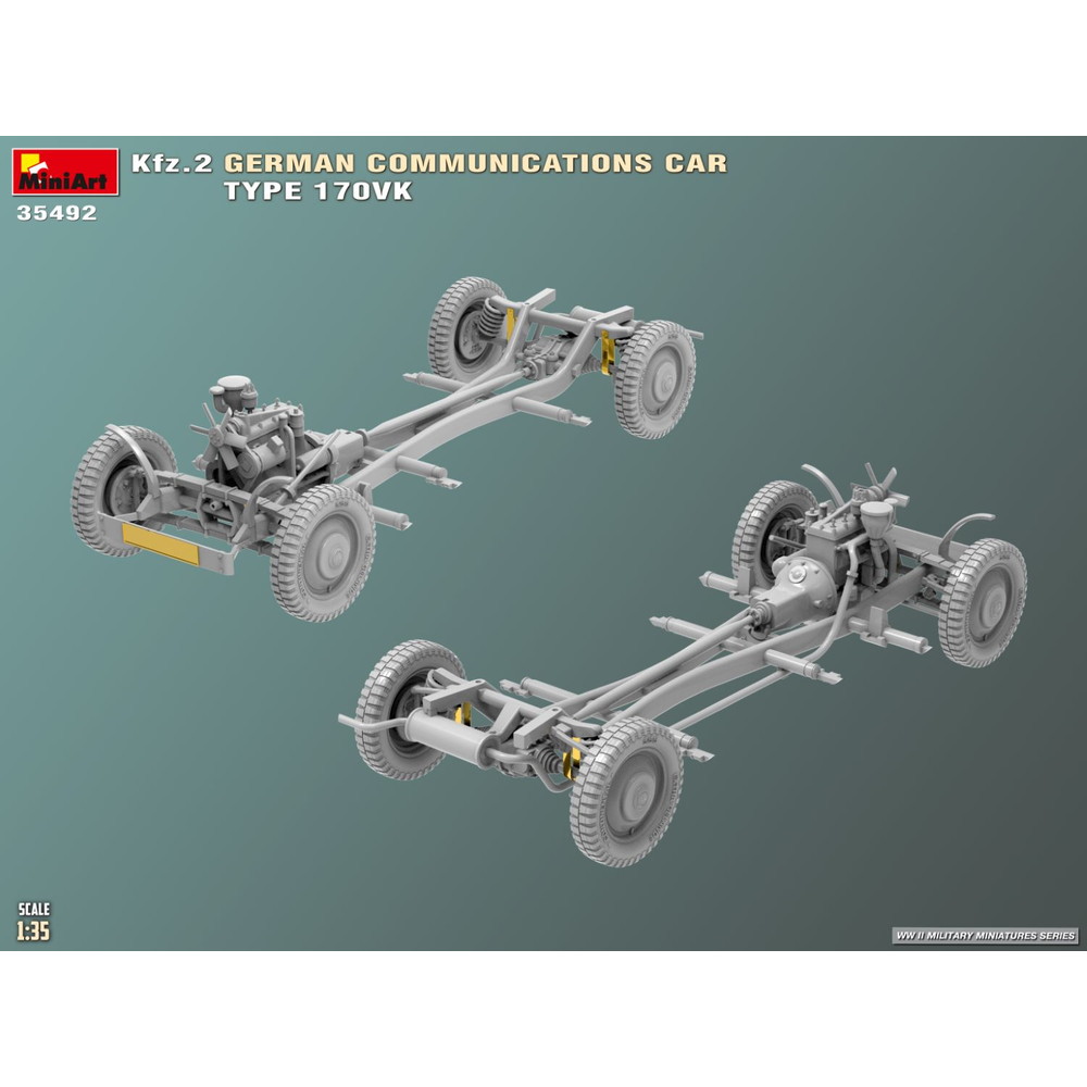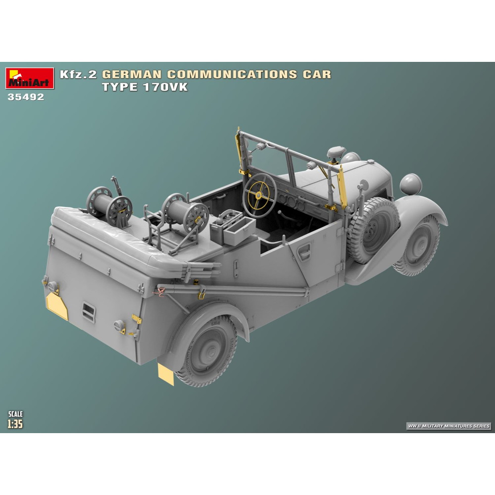 1/35スケールで第二次世界大戦中にドイツ軍が運用した通信車、Kfz.2、170VKを新規金型で再現したプラスチックモデル組み立てキットです。