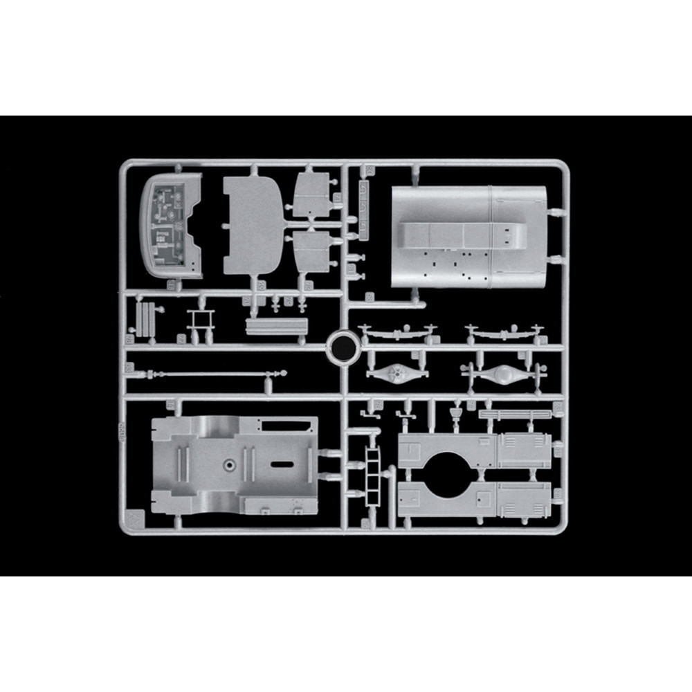 これらの車両はそのプラットフォームを利用して荷台部分を改造したバリエーションタイプも各種作られ、様々な活躍を見せました。前線の飛行場で航空機の燃料を運搬する給油トラック、KFZ385もそのひとつで、給油システム、タンクを装備するほか安全な飛行機への給油を可能にするため排気システムの位置を変更したマフラーも取り付けられていました。