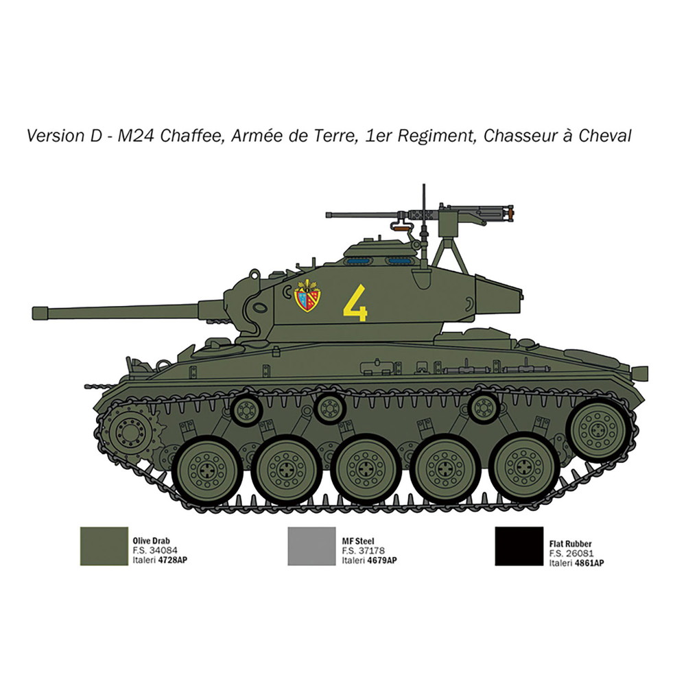 第二次世界大戦末期に登場し戦後も世界各国で活躍したアメリカの軽戦車、M24チャーフィーを再現したプラスチックモデル組み立てキットです。