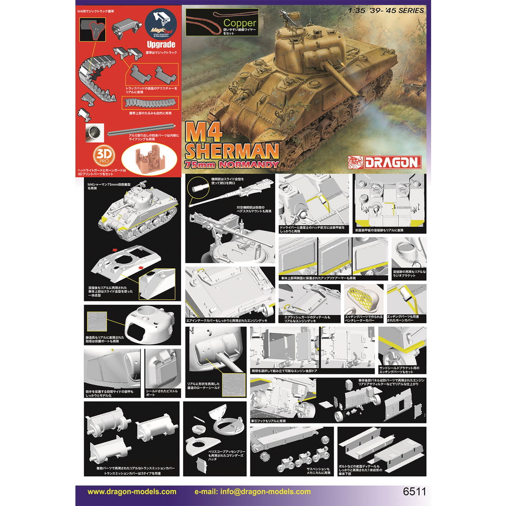 WW.II アメリカ軍 M4シャーマン中戦車 75mm砲搭載型 ノルマンディー上陸作戦 マジックトラック/アルミ砲身/銅製ワイヤー/3Dプリント ヘッドライトガード&ホーンガード付属 豪華仕様