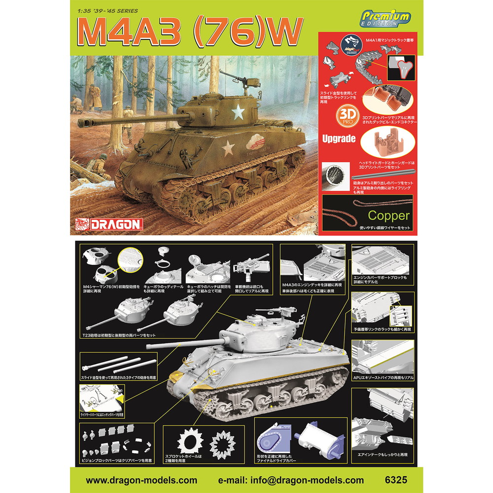 WW.II アメリカ軍 M4A3(76)W シャーマン マジックトラック/アルミ砲身/3Dプリントダックビル&ヘッドライト・ホーンガードパーツ/銅線ワイヤー付属 豪華仕様