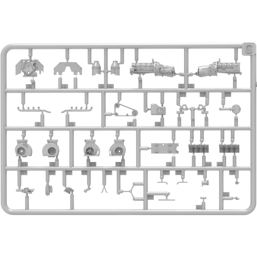 エンジンは補機類なども再現され、トランスミッションも再現。さらに、サスペンションの複雑なディテールが興味深く作っていただけます。