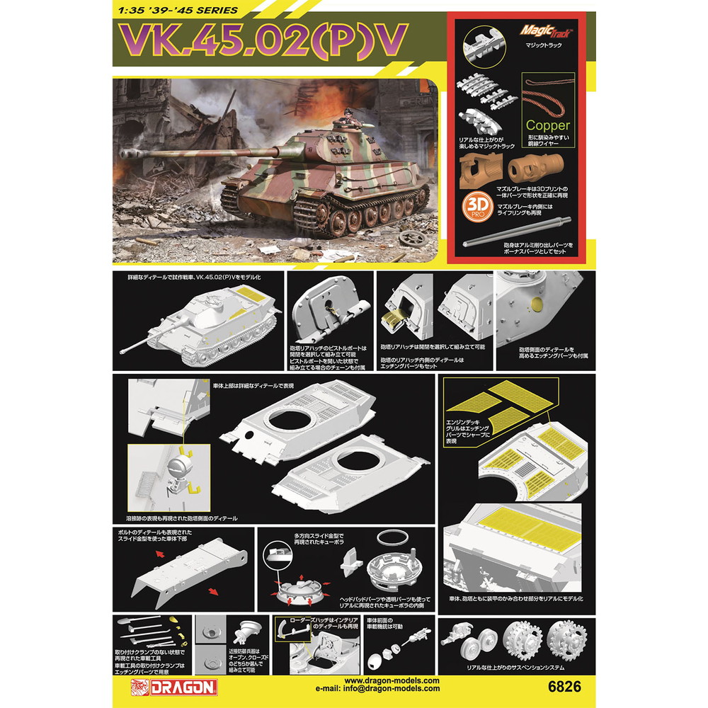 WW.II ドイツ軍 VK.45.02(P)V型 試作重戦車 マジックトラック/アルミ砲身/3Dプリントマズルブレーキ/カッパーワイヤー付属 豪華仕様