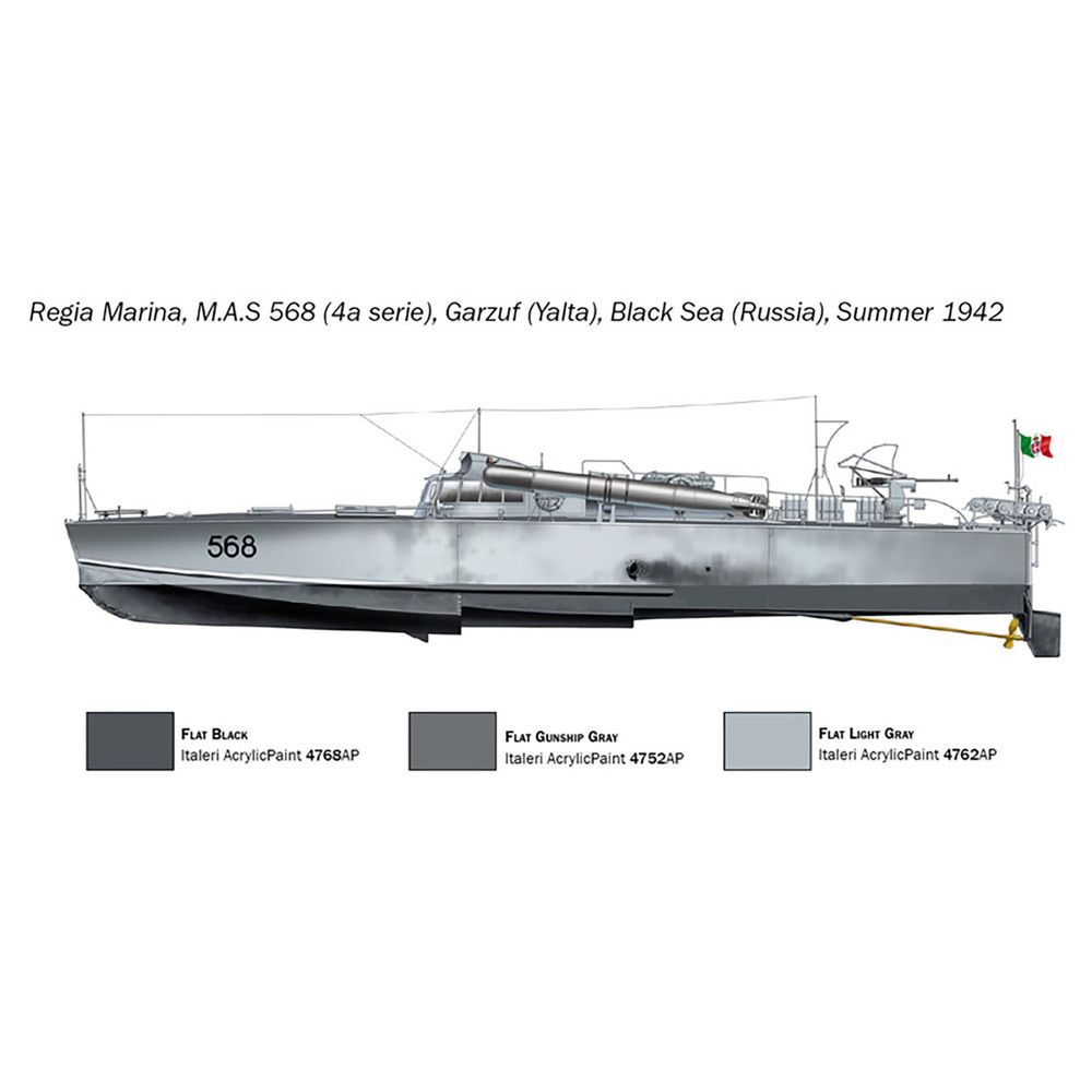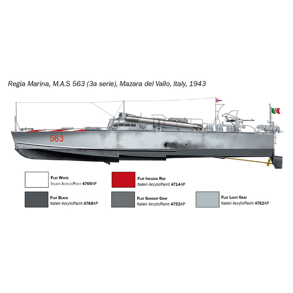 第二次世界大戦中にイタリア海軍が運用した魚雷艇、M.A.S.を再現した1/35スケールのプラスチックモデル組み立てキットです。