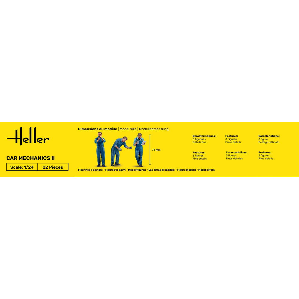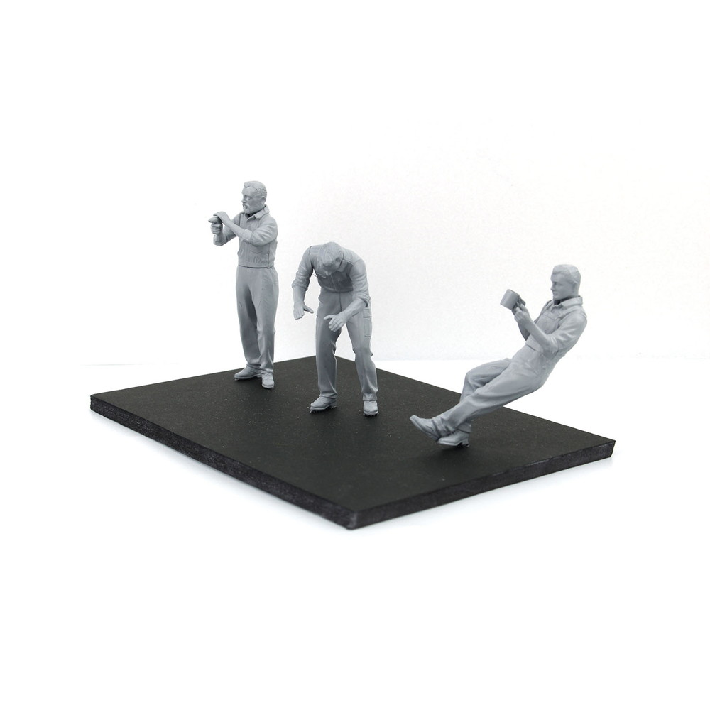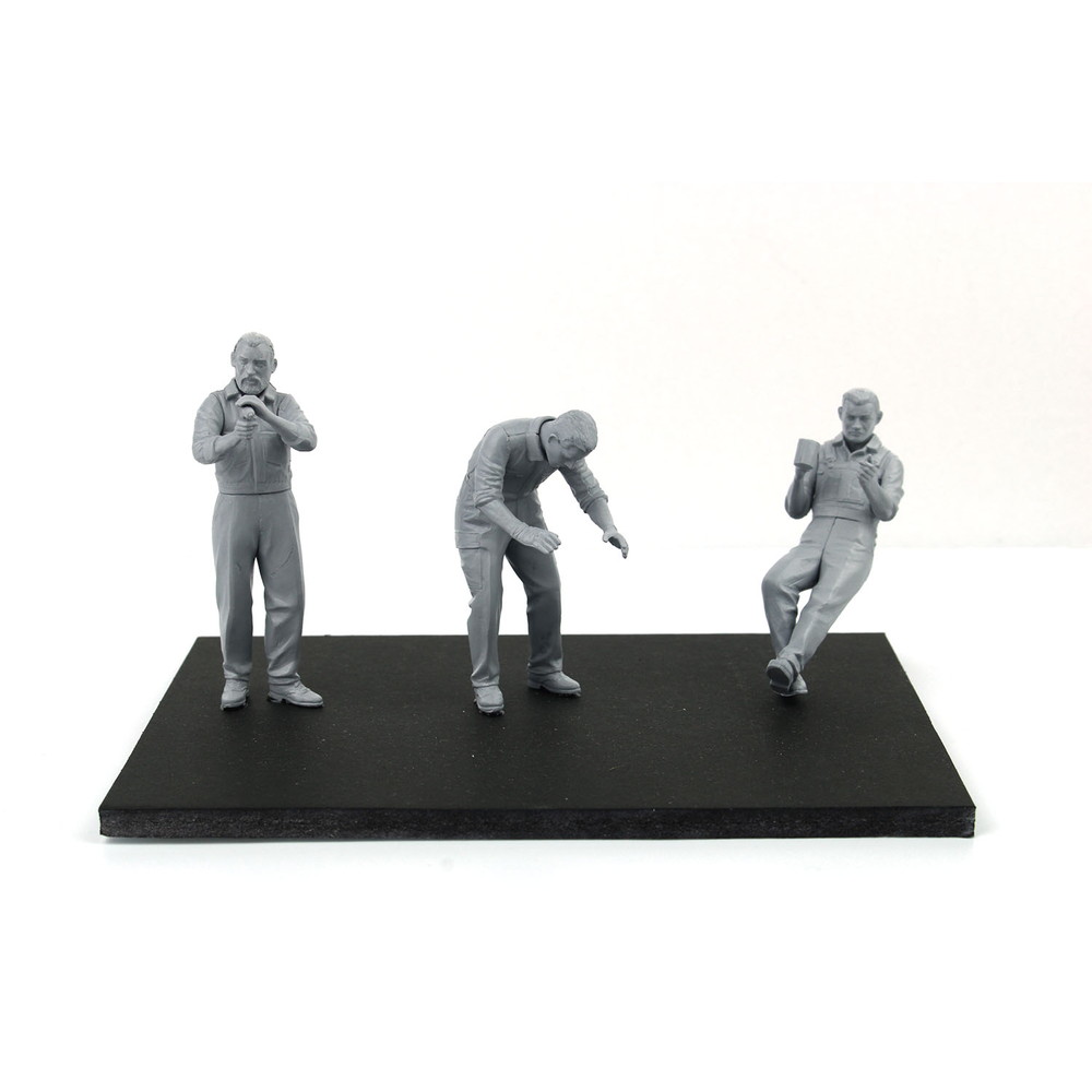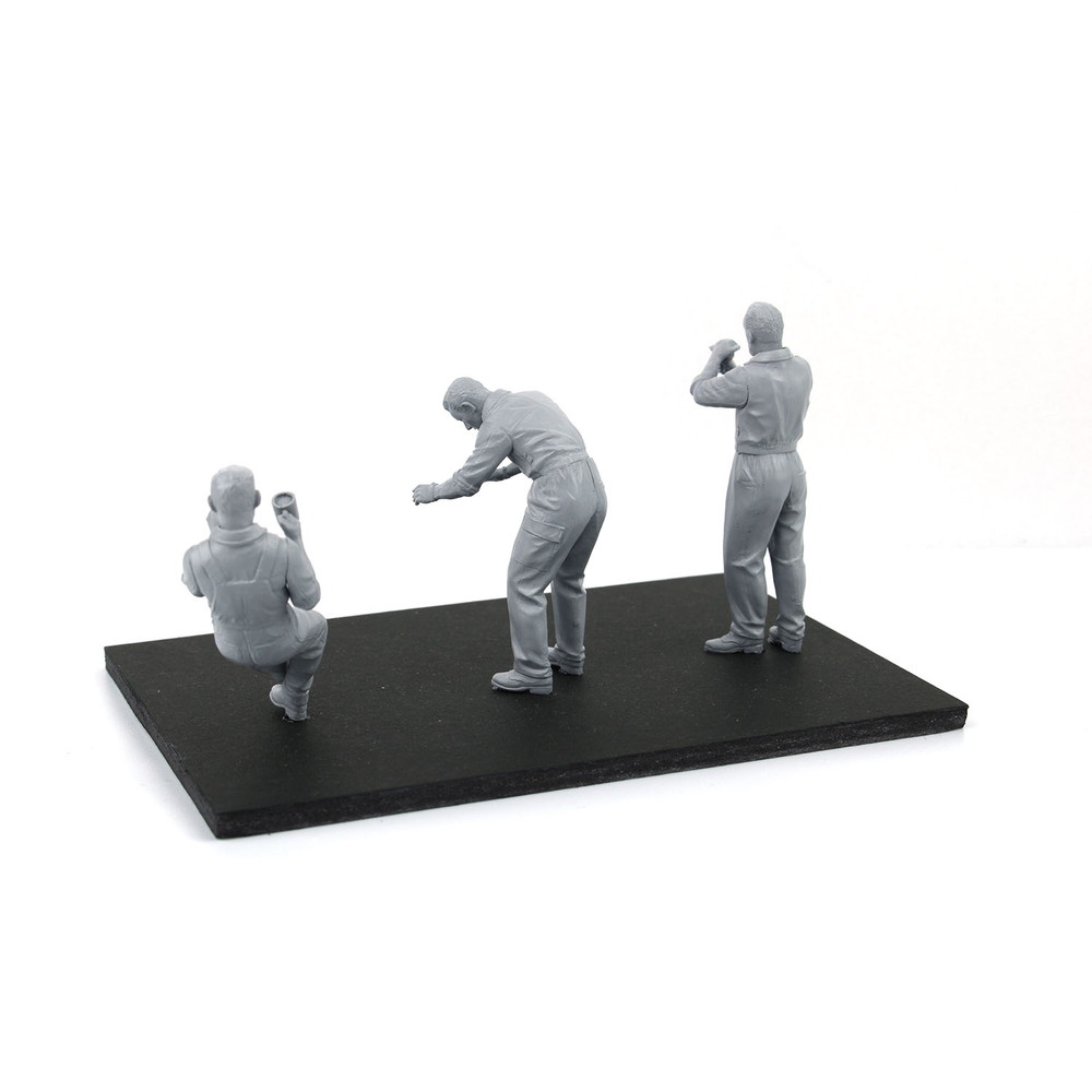 このセットでは街の自動車整備工場で作業するメカニックをモデル化。1/24カーモデルと組み合わせて楽しめるスケールで3体を再現しています。