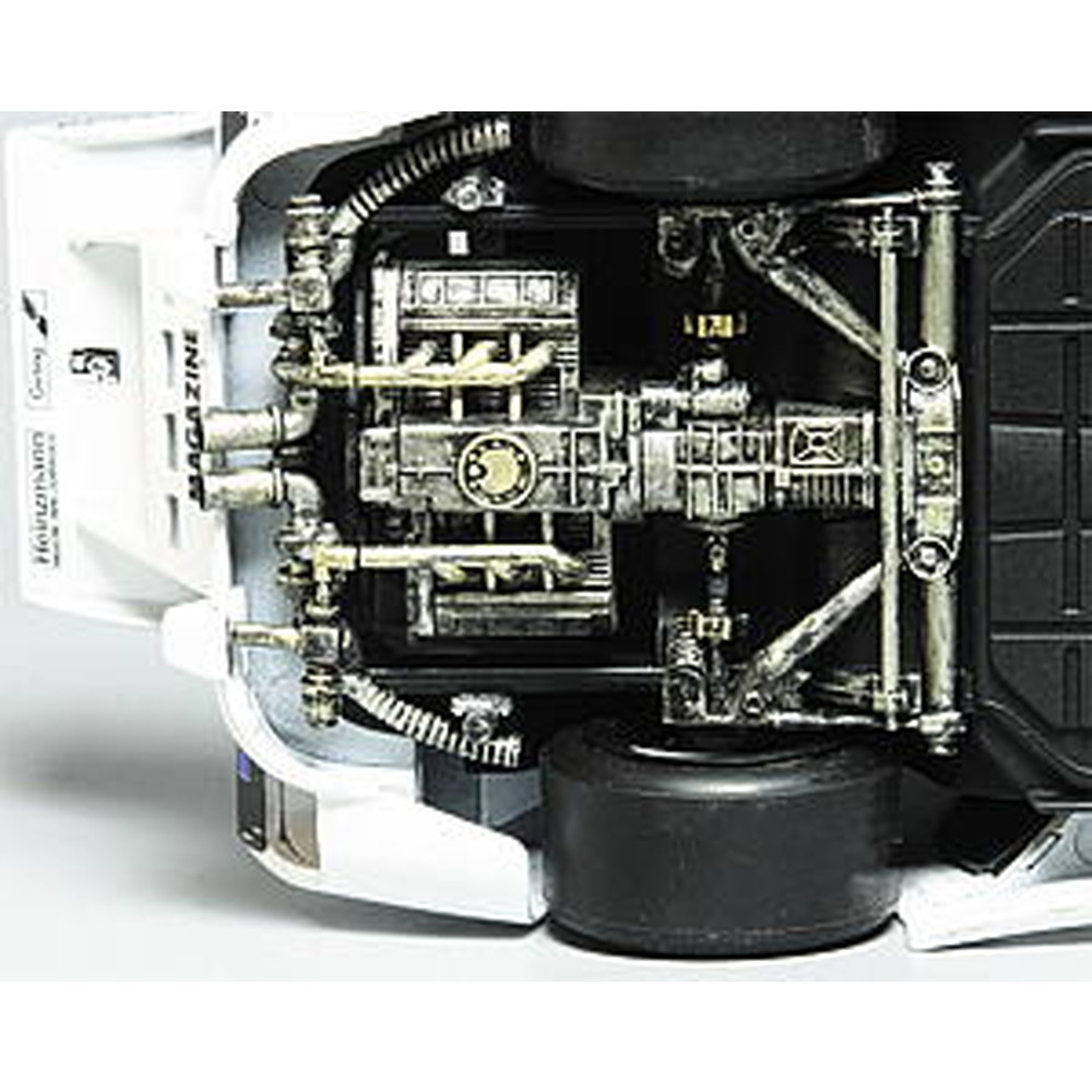 さらに、シャシー下面はサスペンションを含めてメカニカルに表現。エンジン下面も排気管やターボチャージャーマーツが別に用意され、立体感十分です。マーキングはもちろん1979年のル・マン24時間レースで優勝したゼッケンナンバー41のマシンのマーキングを再現しています。グループ5、シルエットフォーミュラ時代の欠かせぬ名優、クレマー・ポルシェ935K3はコレクションにも欠かせない1台です。