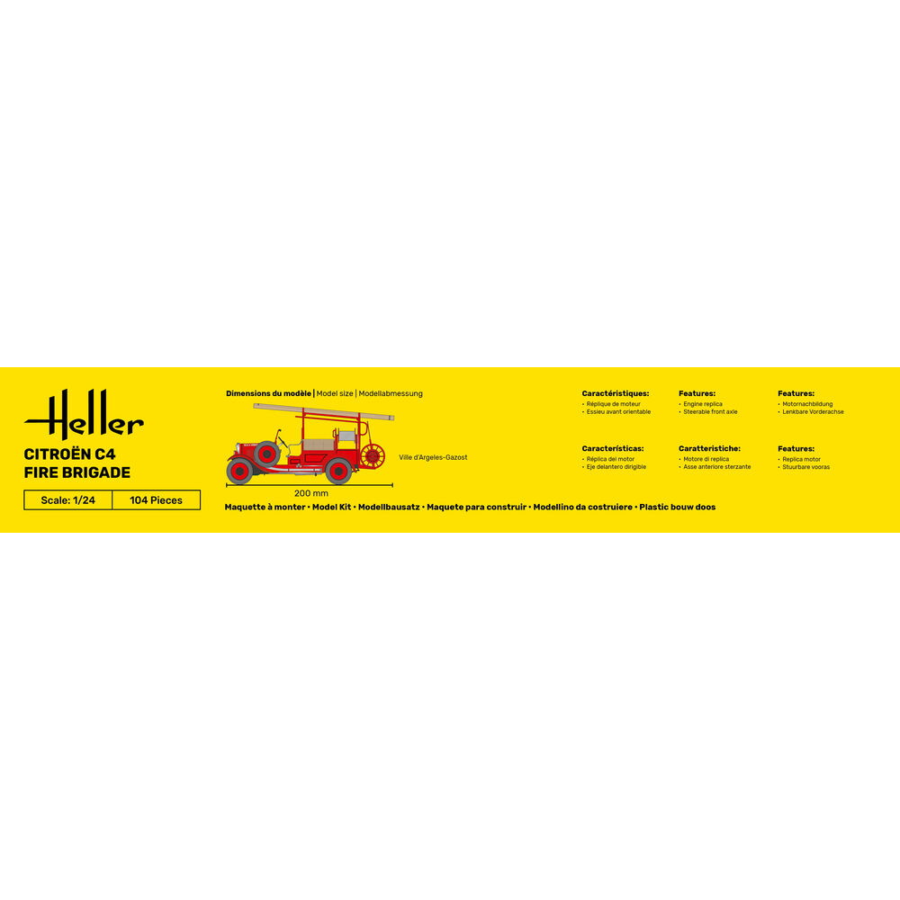 1/24スケールで戦前のフランスの小型車、シトロエンC4をベースにした消防車仕様を再現したプラスチックモデル組み立てキットです。