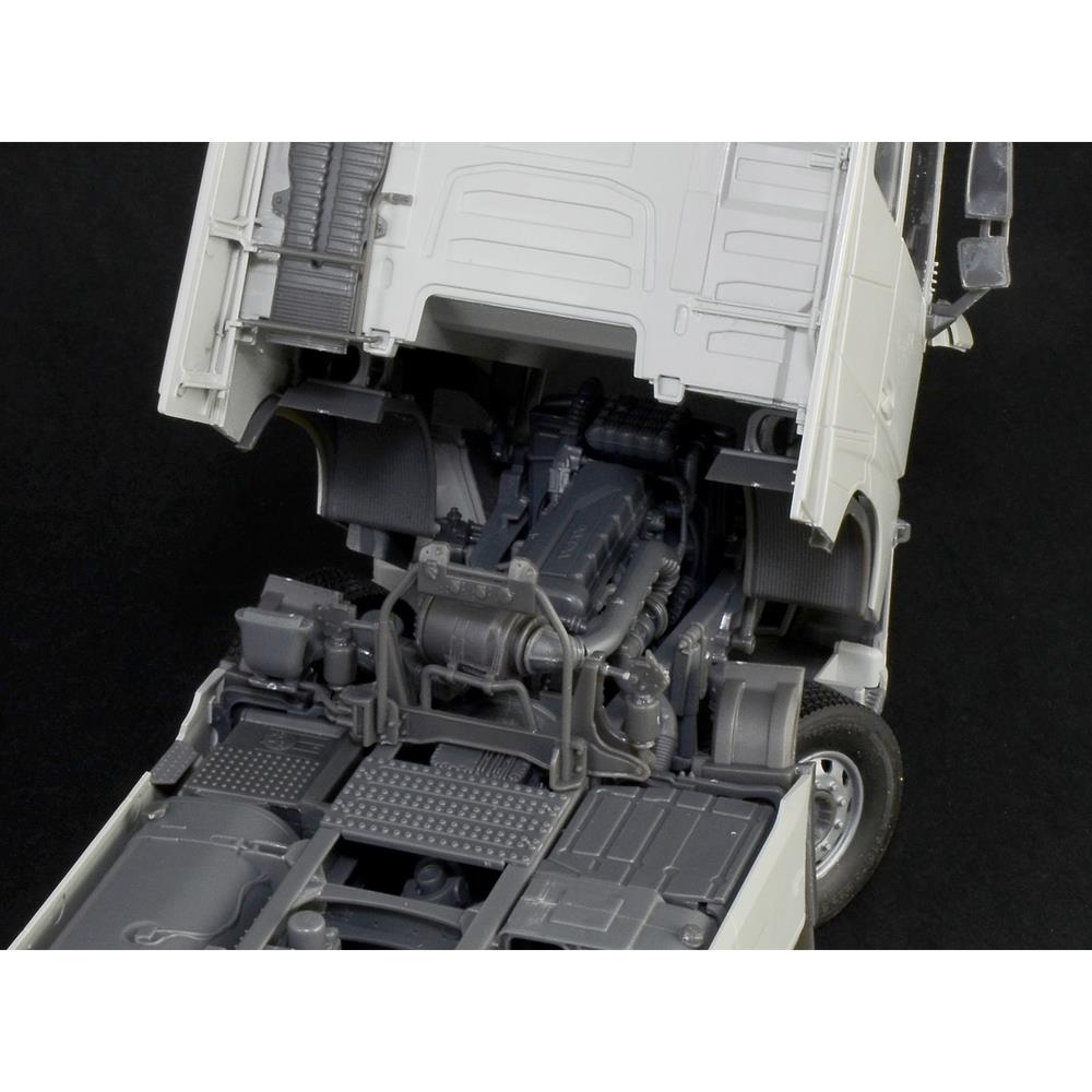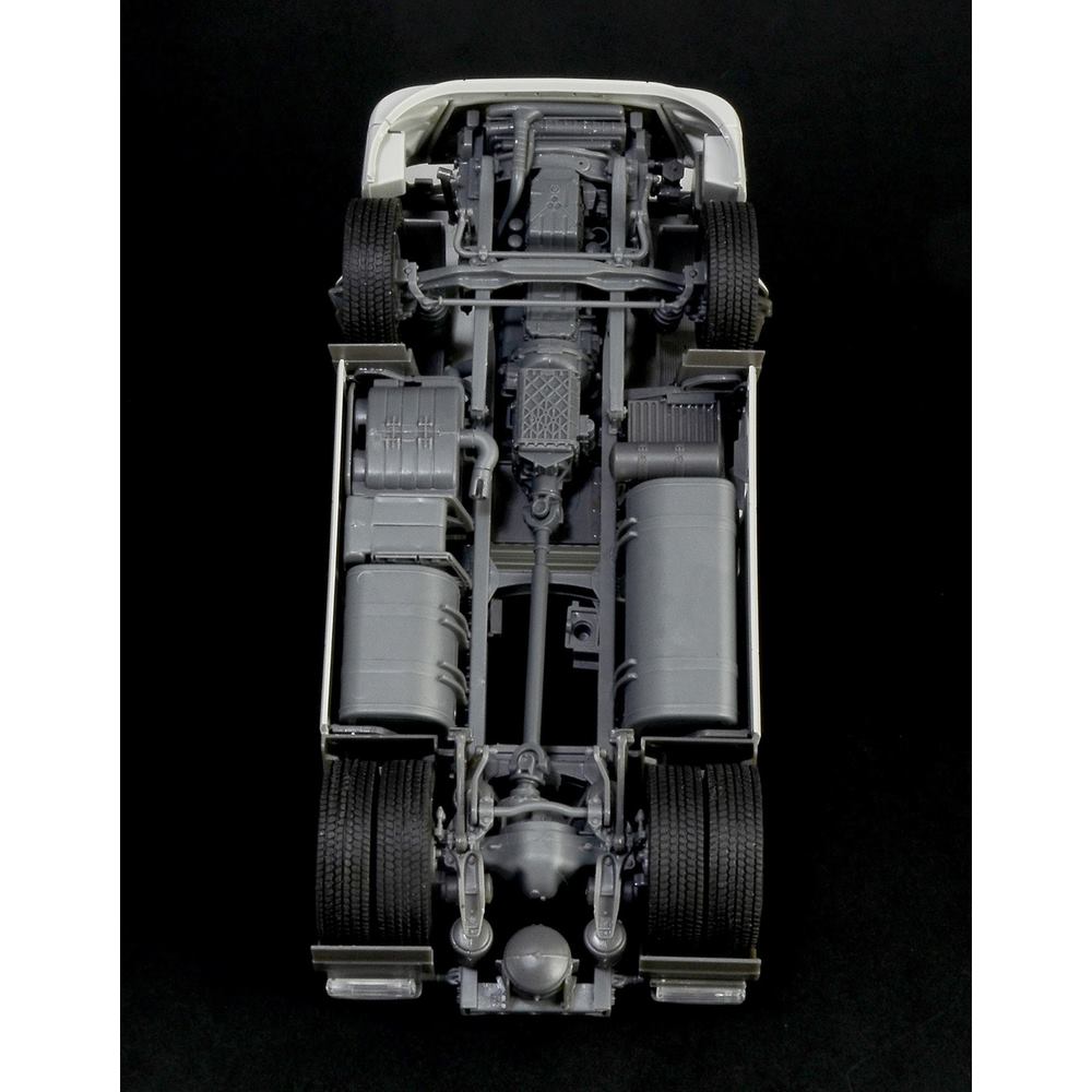 さらに、キャビンの下に収まるエンジンは直列6気筒のエンジンを再現。そのエンジンが搭載されるシャシーフレームもラダーフレームの構成からサスペンション、ドライブトレインなどのメカニズムもフルディテールでモデル化されています。その構造もわかる再現はディテールアップに腕を振るってみるのも楽しみです。