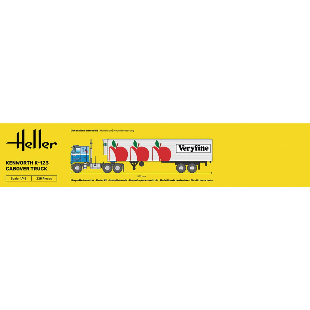 モデルはケンワースのK-123キャブオーバー、トレーラーヘッドと牽引するリーファートレーラーを1/43スケールで再現したプラスチックモデル組み立てキットです。
