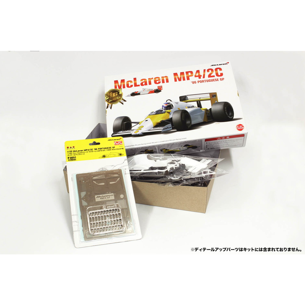 F1グランプリで1986年シーズンにマクラーレンが用意したマシンがMP4/2Cです。エンジンはTAGターボのV型6気筒。アラン・プロストとケケ・ロズベルクがドライブし、プロストがドライバーズチャンピオンを獲得しました。モデルはエンジンからシャシー、サスペンションまで精密に再現。カラーリングはスポンサーの新製品に合わせてポルトガルGPのみ使用されたイエローとホワイトの塗り分けのタイプを再現しています。