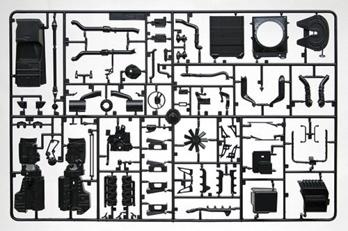 モデルは1/24スケールで世界的に知られたスウェーデンのトラックメーカー、スカニアのR620トレーラーヘッドを再現したプラスチックモデル組み立てキットです。仕上がりの全長は25cm、パーツ点数約280点でエンジンやサスペンション、キャビン内部にいたるまで再現したフルディテールキットです。キャブオーバータイプのキャビンはそのデザインはもちろん、シートやダッシュボードなどインテリアもしっかりと表現。フロントグリルのトリムにはメッキシールも用意され、スタイリッシュな仕上がりが楽しみです。もちろん、完成後もチルトアップが可能で、その下にはパワフルなV型8気筒エンジンを補器類まで細かくモデル化。ディテールアップに腕を振るってみるのもよいでしょう。加えてシャシーも駆動系やサスペンションまで、実車のメカニズムをそのままモデル化。マーキングはスカニアの40周年を記念するマーキングとダーク・ダイヤモンドの2種が用意されています。