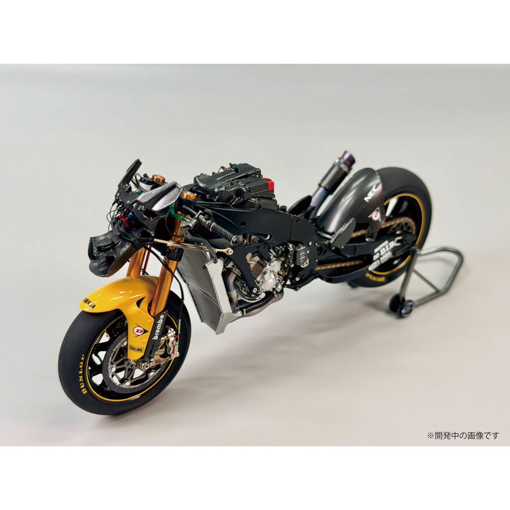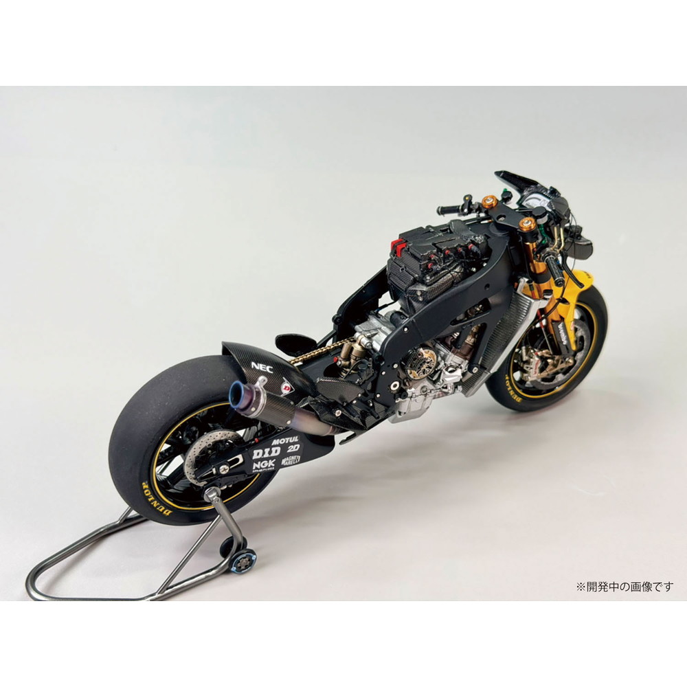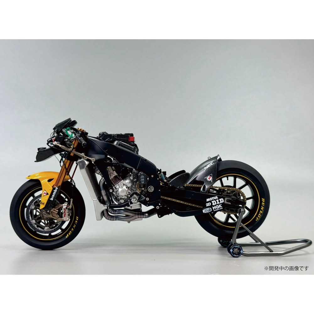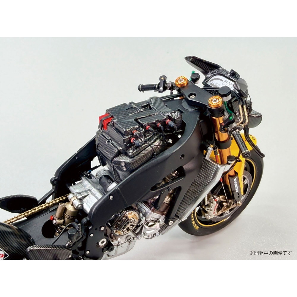 スケールは1/12、仕上がり全長は約172mm、全幅58mmでレーシングバイクのメカニズムを詳細に再現しています。
