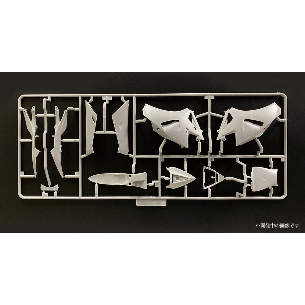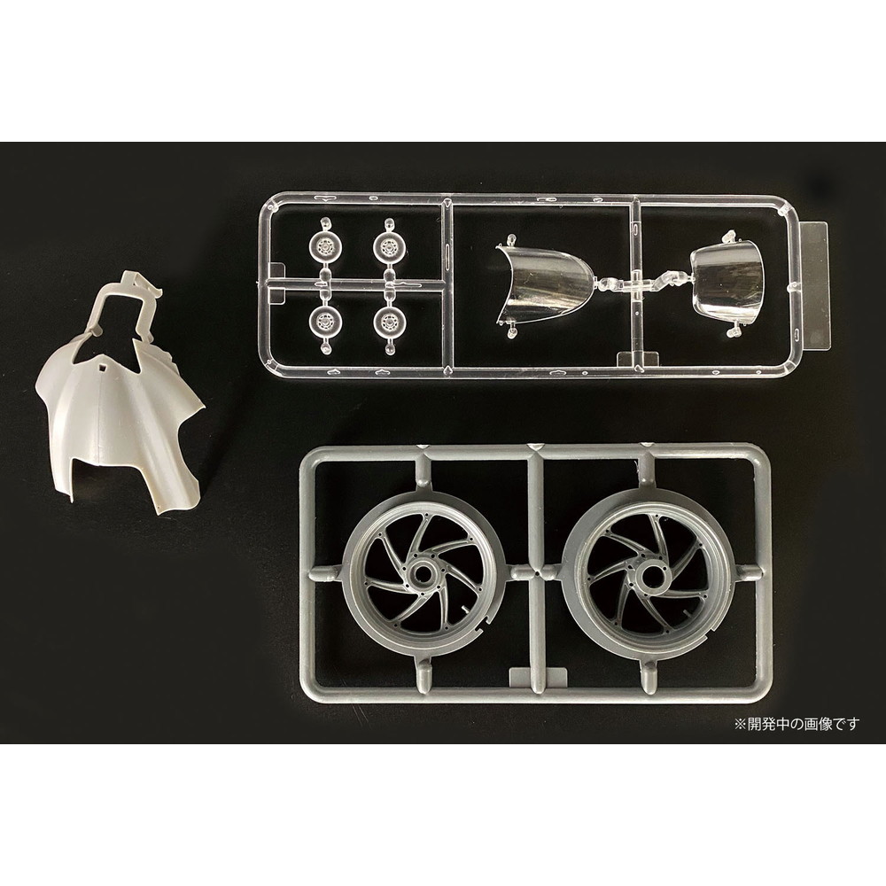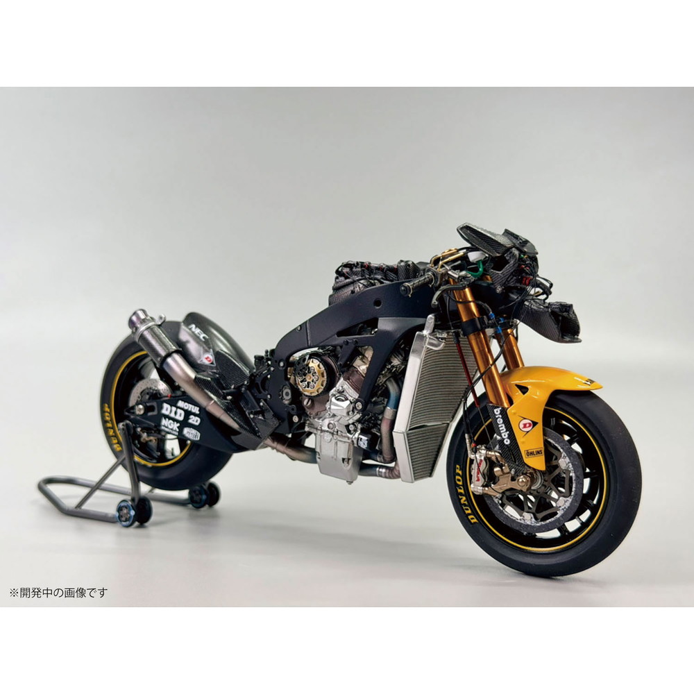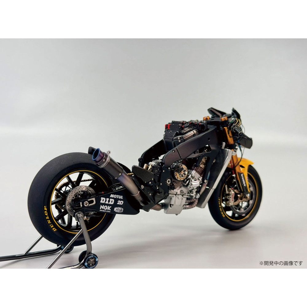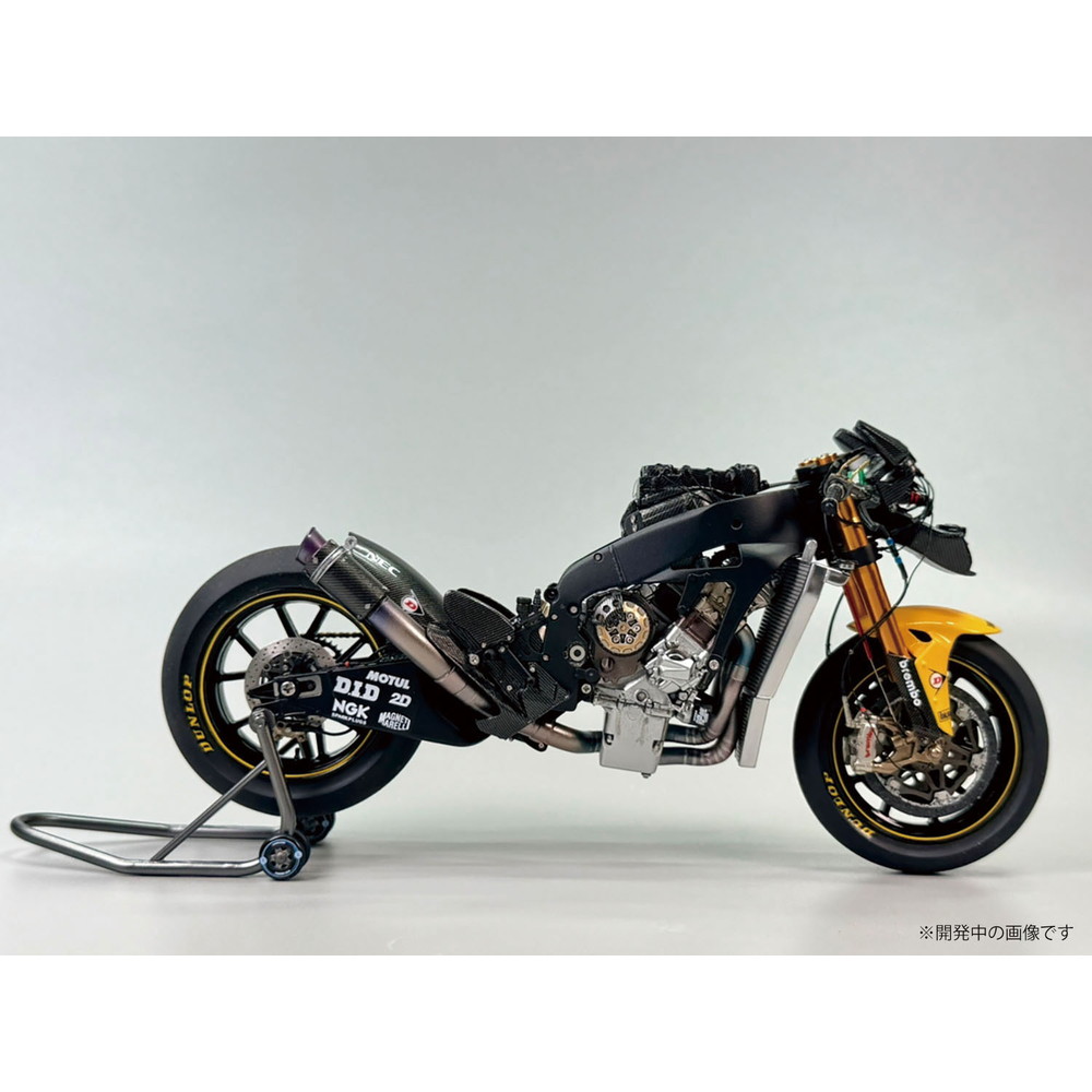 スケールは1/12、仕上がり全長は約172mm、全幅58mmでレーシングバイクのメカニズムを詳細に再現しています。