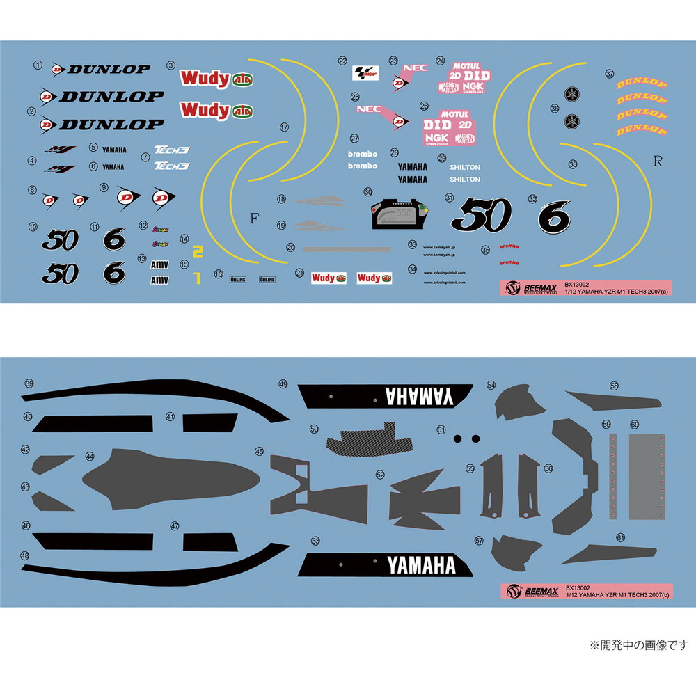 マーキングは2007年にMoto-GPクラスに参戦したテック3ヤマハ・チームの玉田誠選手とシルバン・ギュントーリ選手のマーキングを用意。