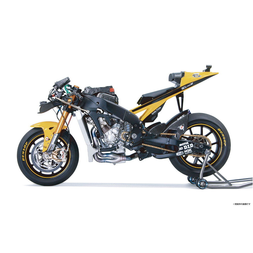 スケールは1/12、仕上がり全長は約172mm、全幅58mmでレーシングバイクのメカニズムを詳細に再現しています。