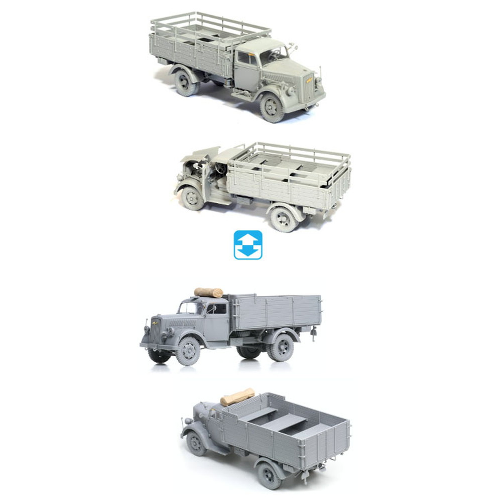 第二次世界大戦のドイツ軍3トン軍用トラックを1/35スケールで再現。このキットは通常のトラックタイプをモデル化しています。