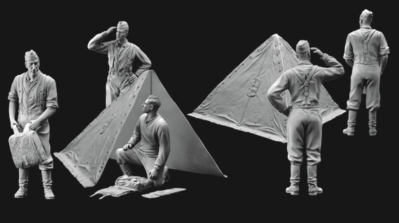 テントを張って野営の準備をするポージングで情景展開が楽しみです。戦車とは一味違うソフトスキンの魅力に溢れたキットです。