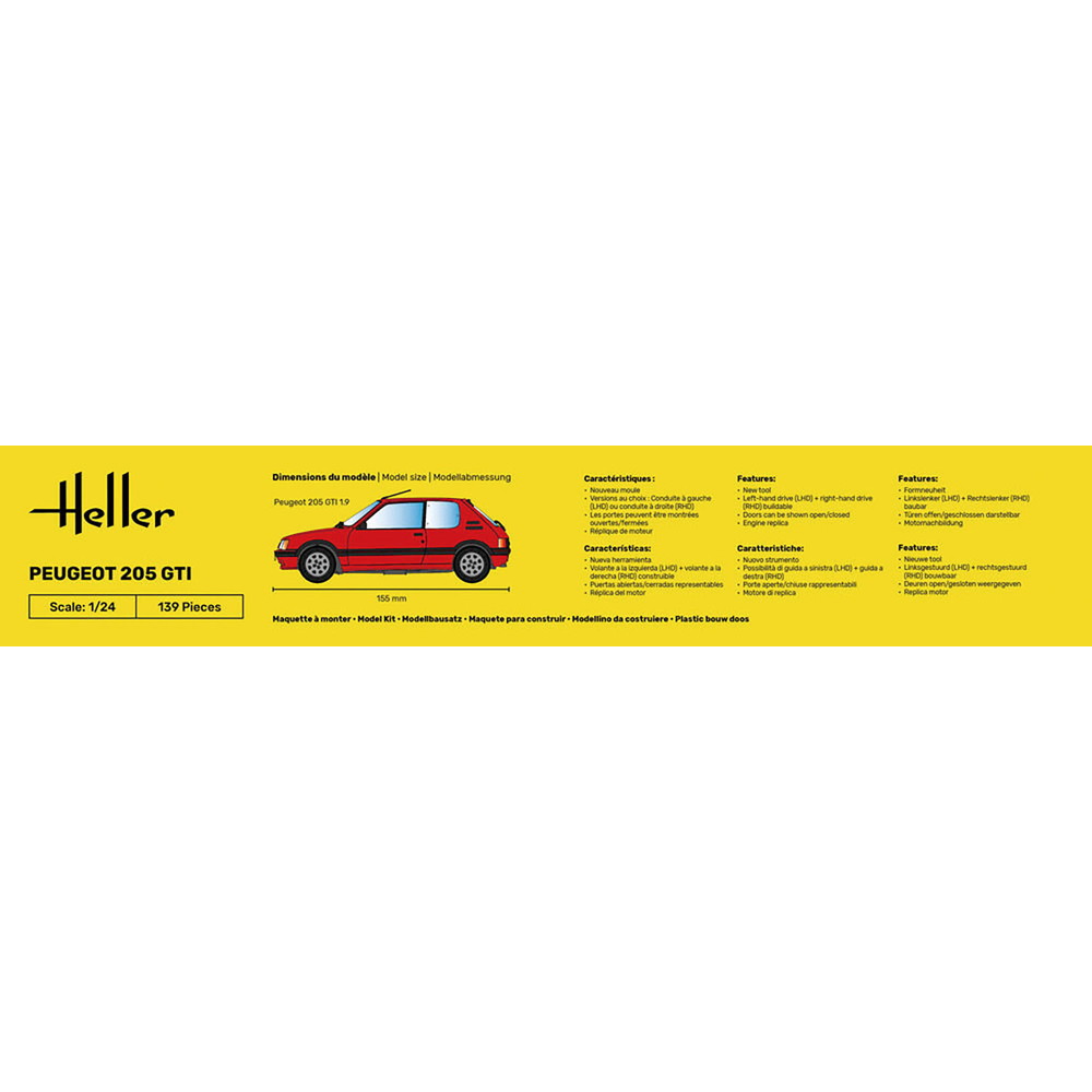 プジョーのホットハッチとして高い人気を集めたプジョー205GTIを再現した1/24スケーるのプラスチックモデル組み立てキットです。