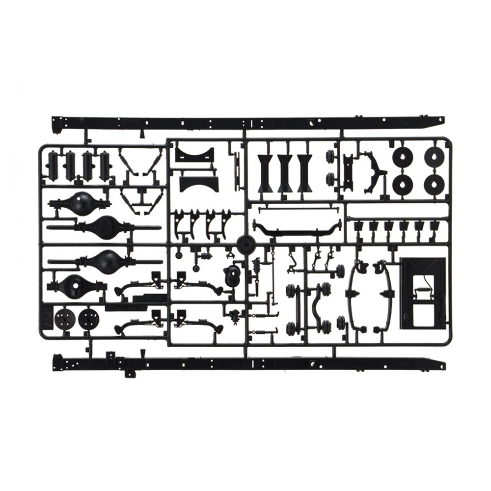 実車の構造そのままに再現される組み立て式のラダーフレームはリーフスプリングなどのサスペンションもしっかりとモデル化。フロントには直列6気筒のエンジンを再現します。