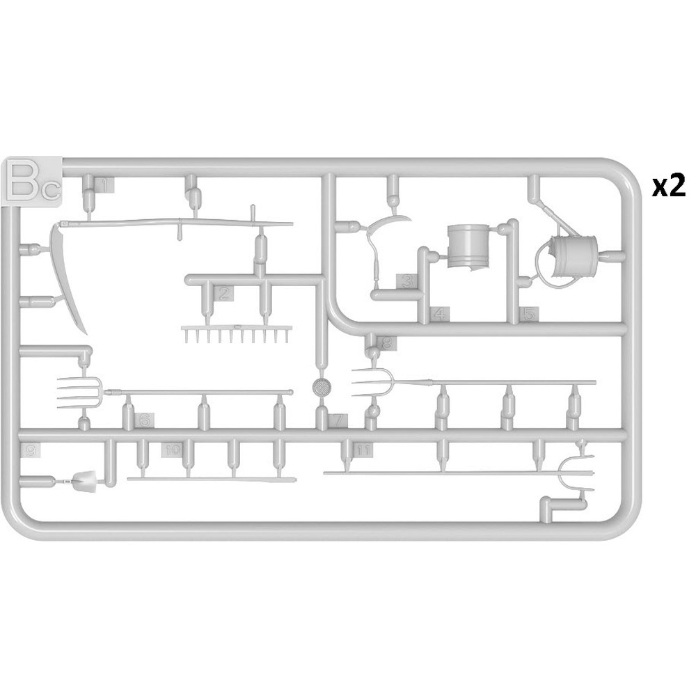 非常に詳細なモデル キットには、トラクター、ファームカート、2つのフィギュア、村のアクセサリーのモデルが含まれています。